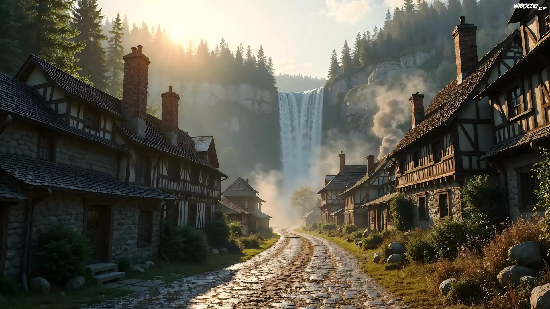Zdjęcia, Droga, Domy, Wodospad, Skały