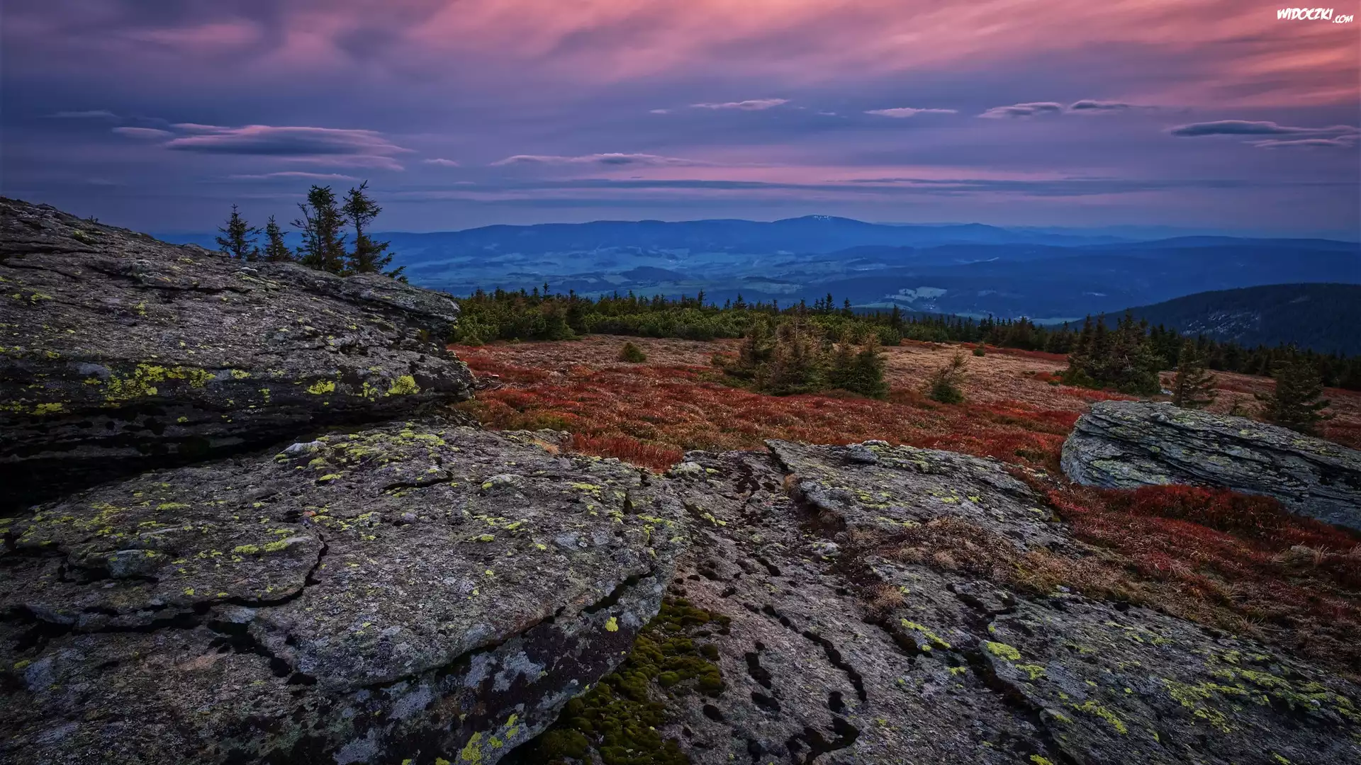 Zdjęcia, Skały, Góry, Drzewa, Chmury