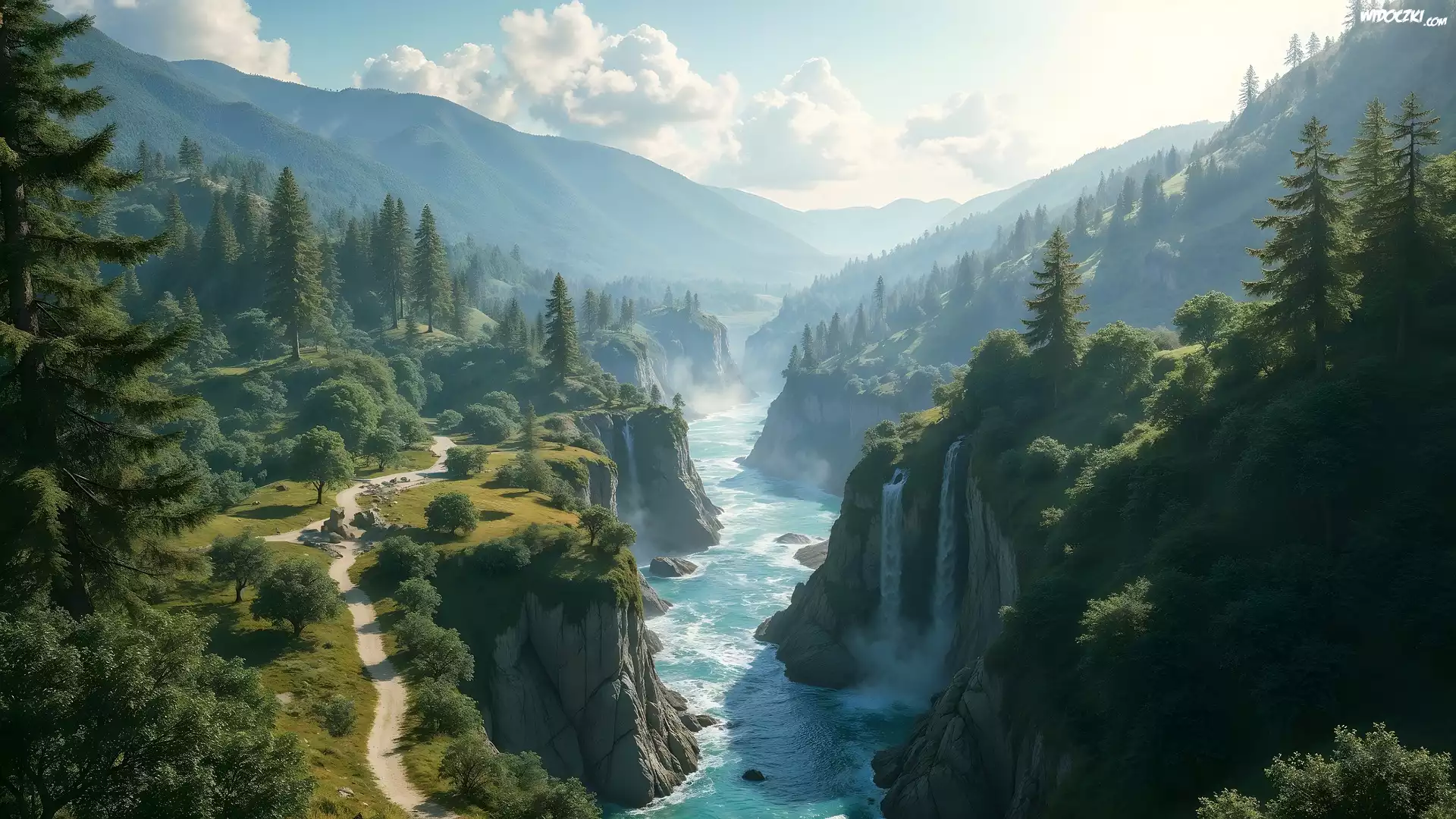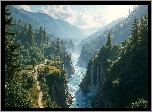 Zdjęcia, Rzeka, Skały, Drzewa, Wodospady, Góry