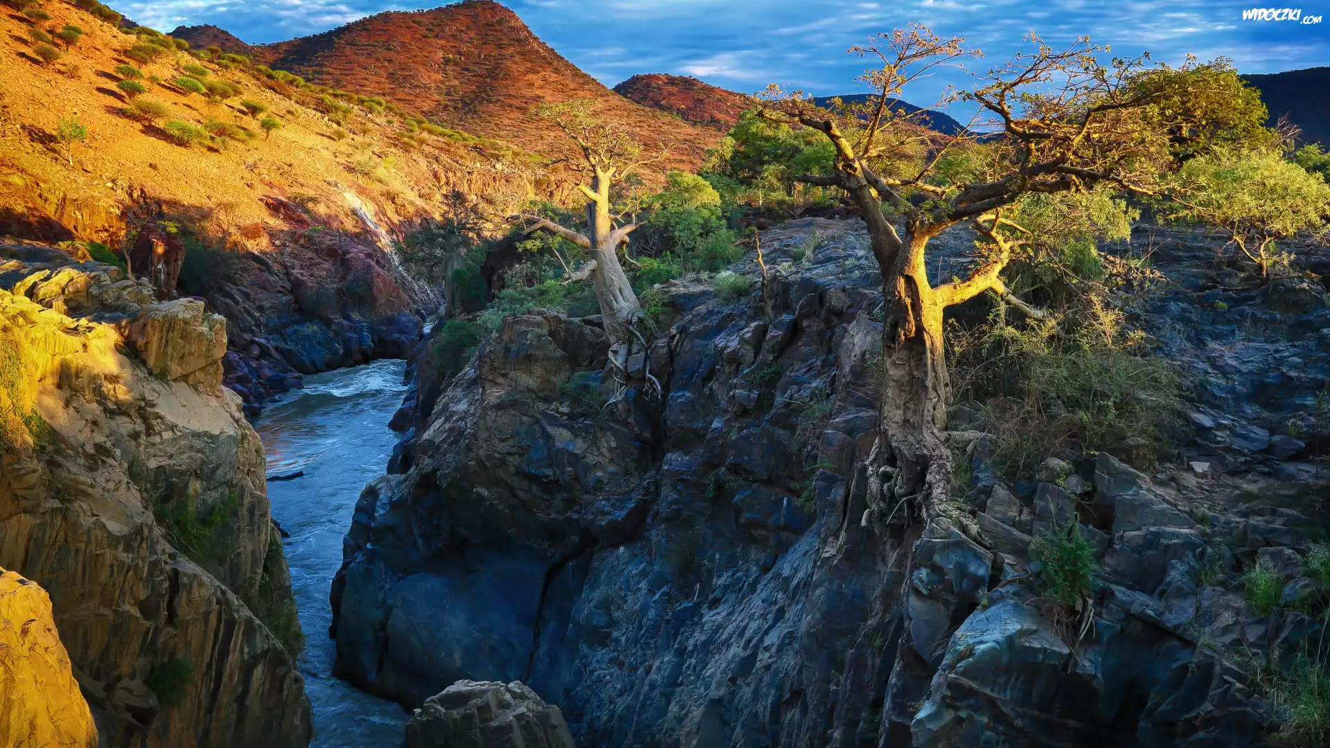 Zdjęcia, Góry, Skały, Drzewa, Rośliny, Rzeka