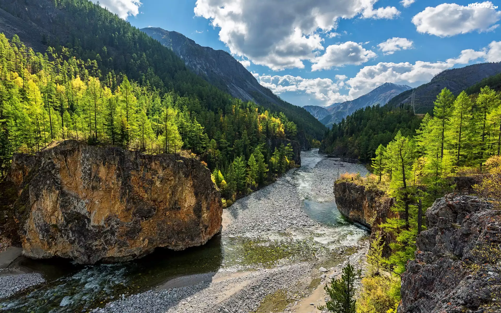 Góry, Rzeka, Wąwóz, Skały, Lasy, Drzewa