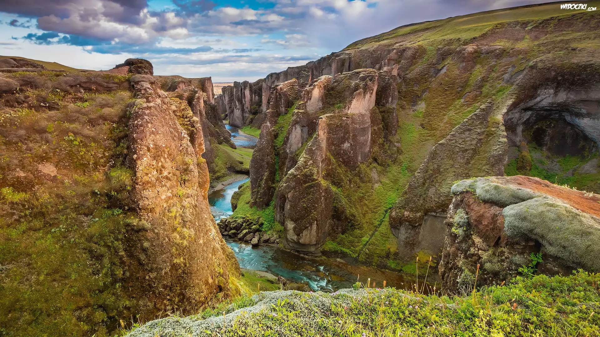 Zdjęcia, Góry, Skały, Kanion Fjadrargljufur, Rzeka Fjadra, Islandia