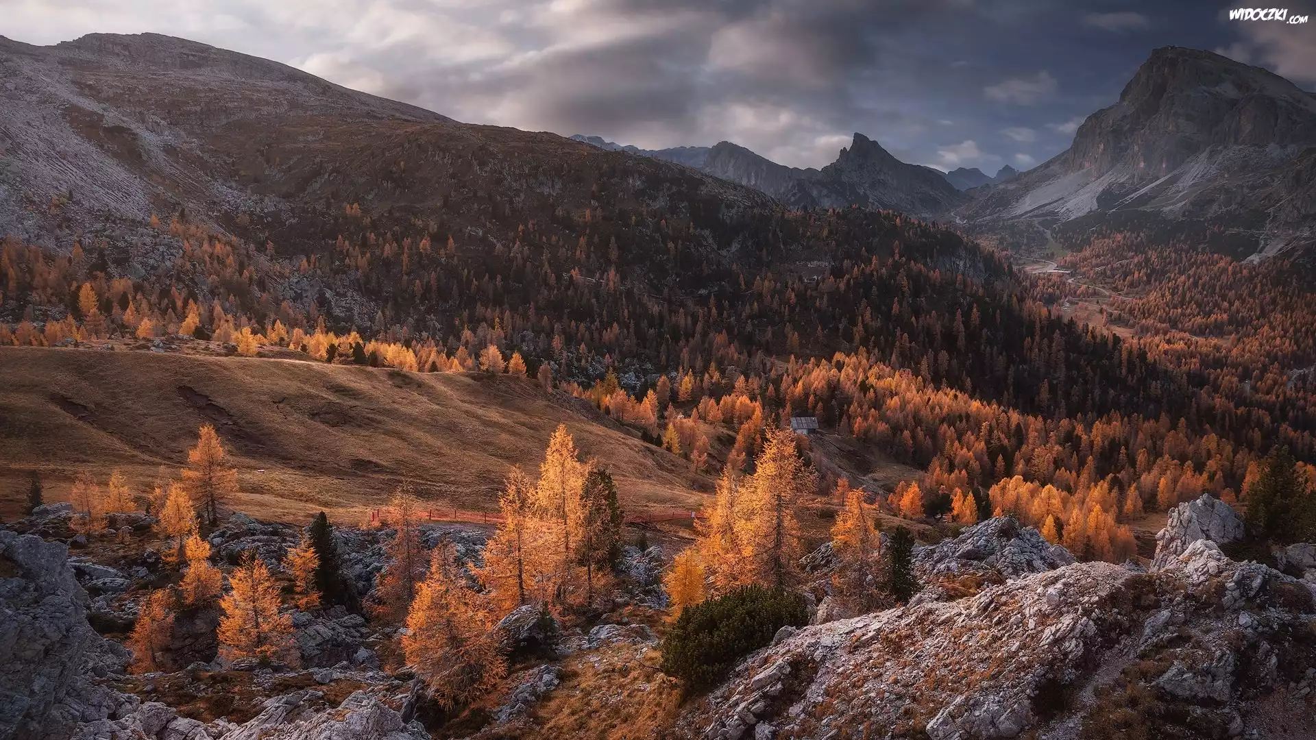 Zdjęcia, Góry, Drzewa, Modrzewie, Skały