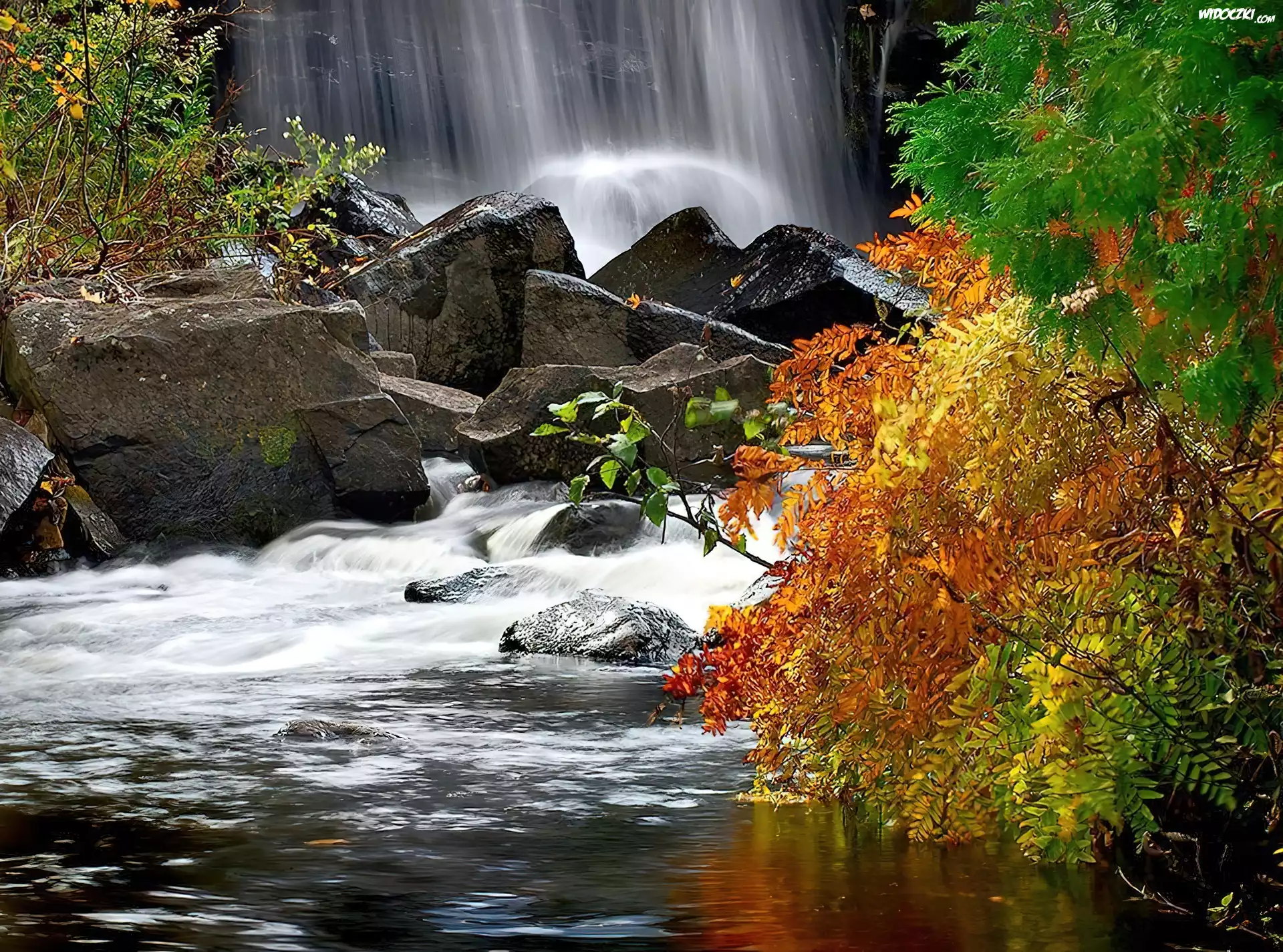 Zdjęcia, Skały, Wodospad, Jesienne, Kolory