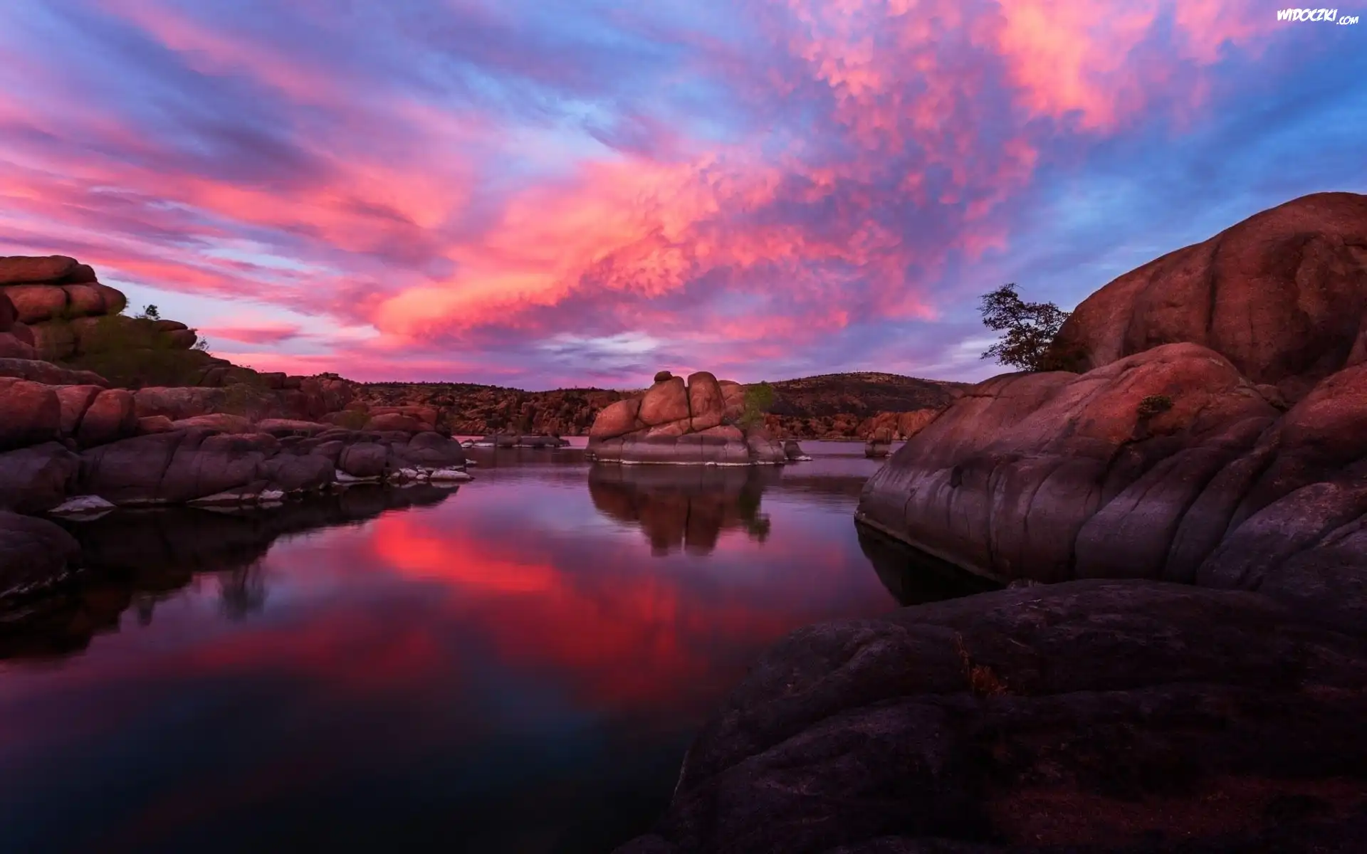 Zdjęcia, Jezioro, Skały, Chmury