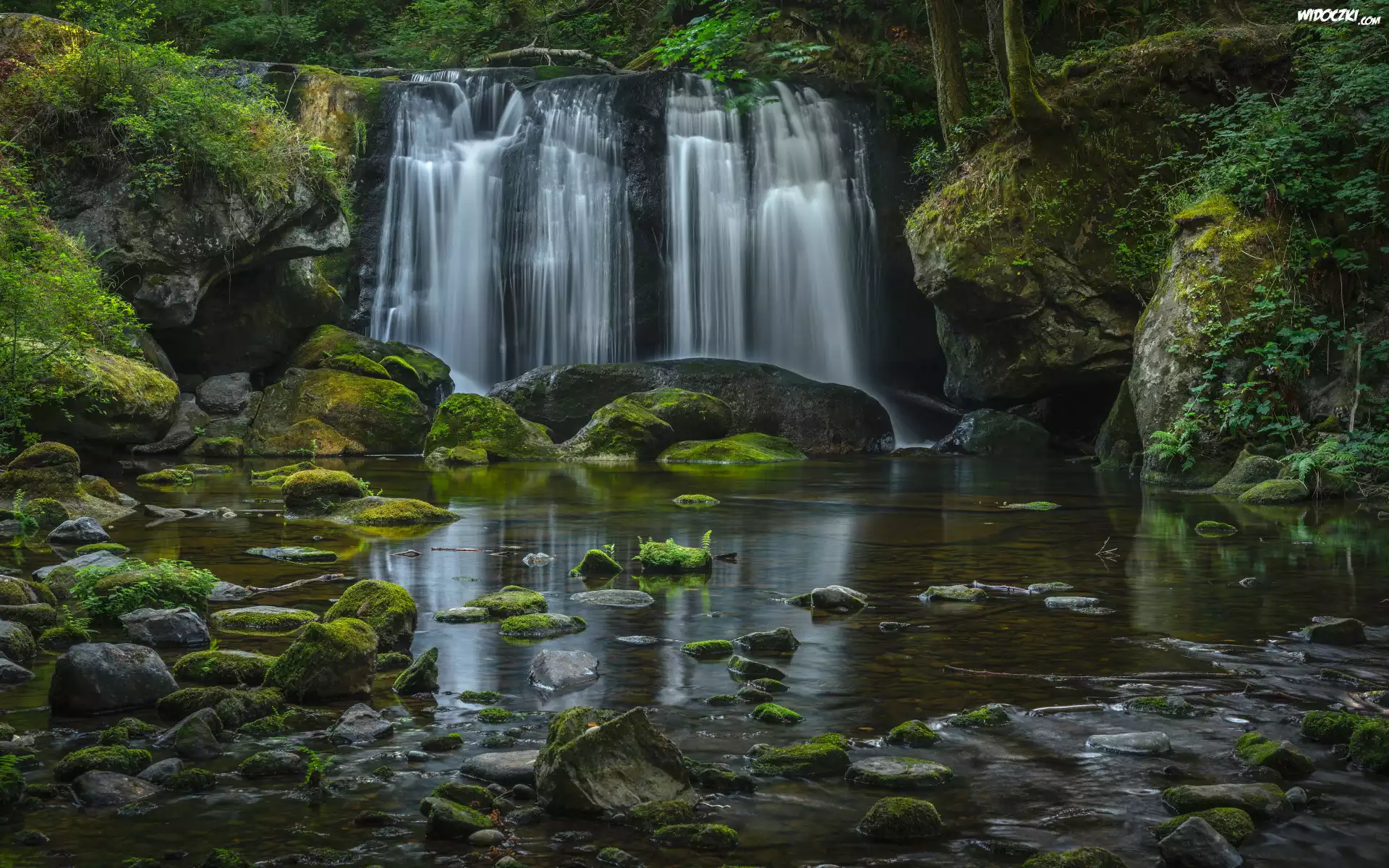 Zdjęcia, Las, Skały, Kamienie, Wodospad, Rzeka
