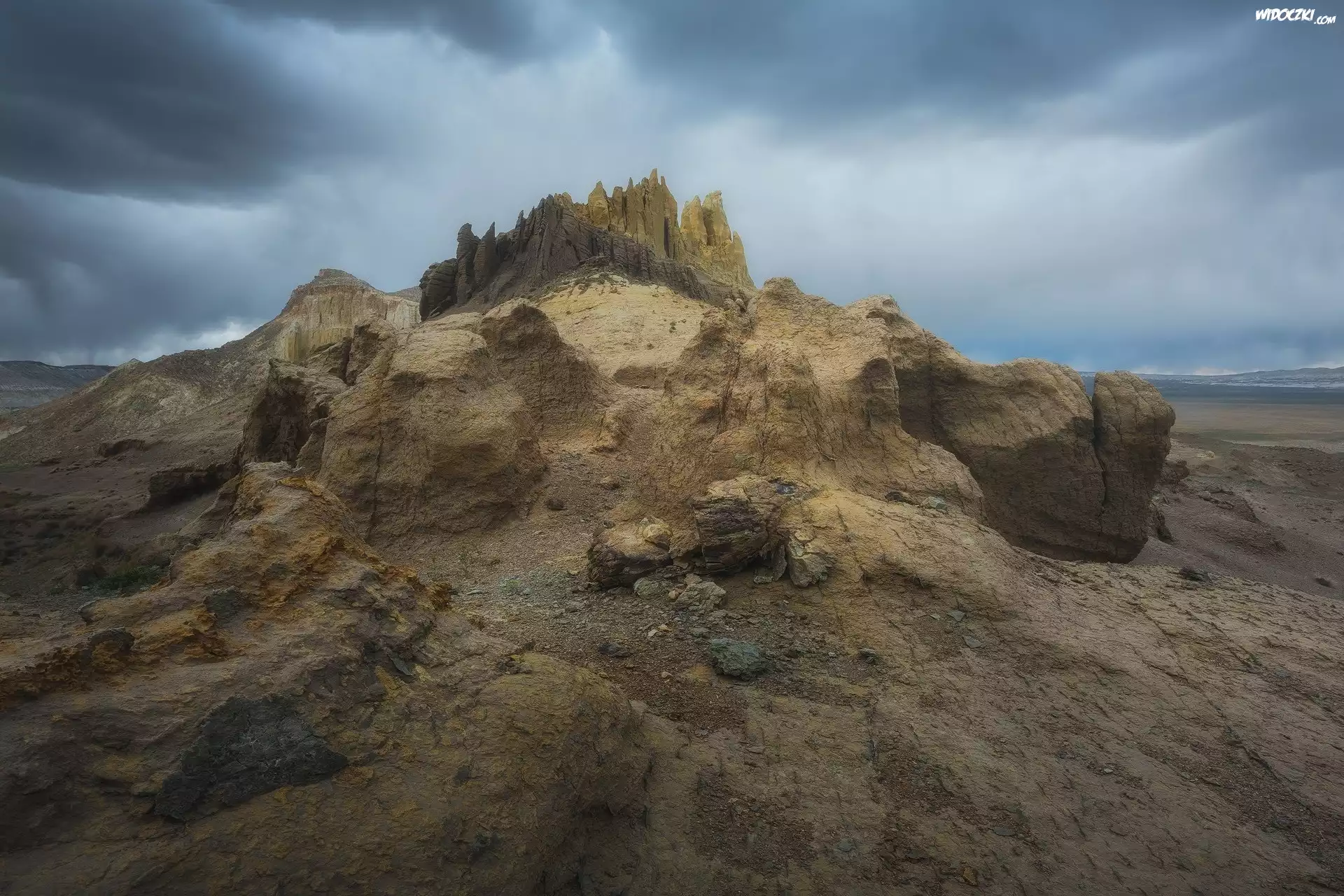 Zdjęcia, Góra, Skały, Chmury, Płaskowyż Ustiurt, Obwód mangystauski, Kazachstan