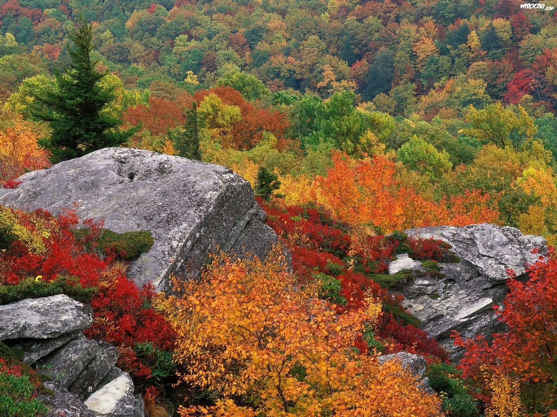 Zdjęcia, Skały, Lasy, Kolorowe, Liście