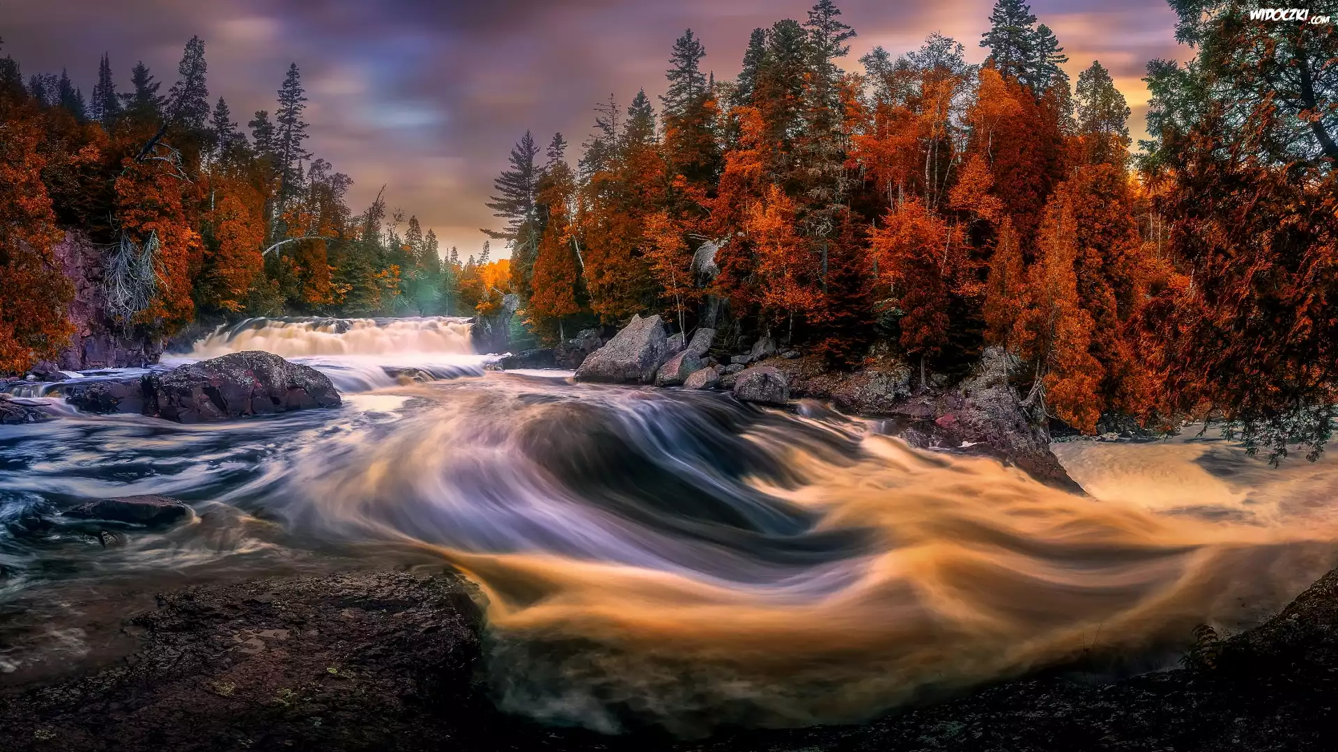 Zdjęcia, Rzeka, Drzewa, Skały, Kamienie, Las, Park stanowy Tettegouche, Minesota, Stany Zjednoczone