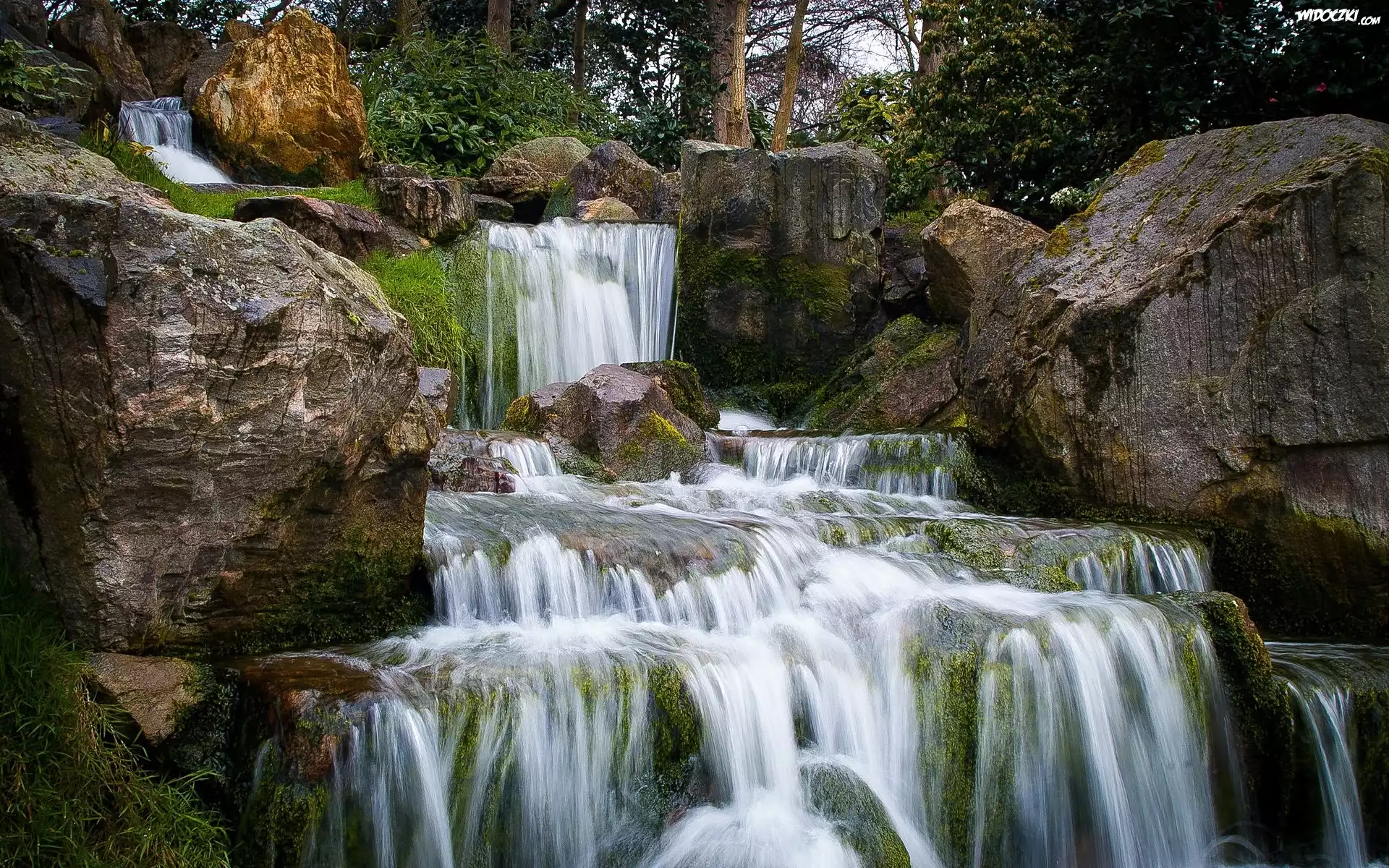 Zdjęcia, Las, Skały, Wodospad