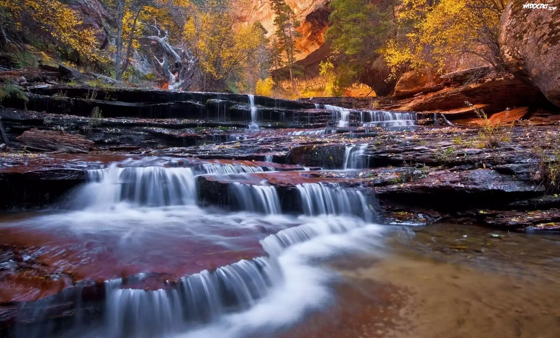 Zdjęcia, Skały, Wodospad, W, Lesie, Jesień