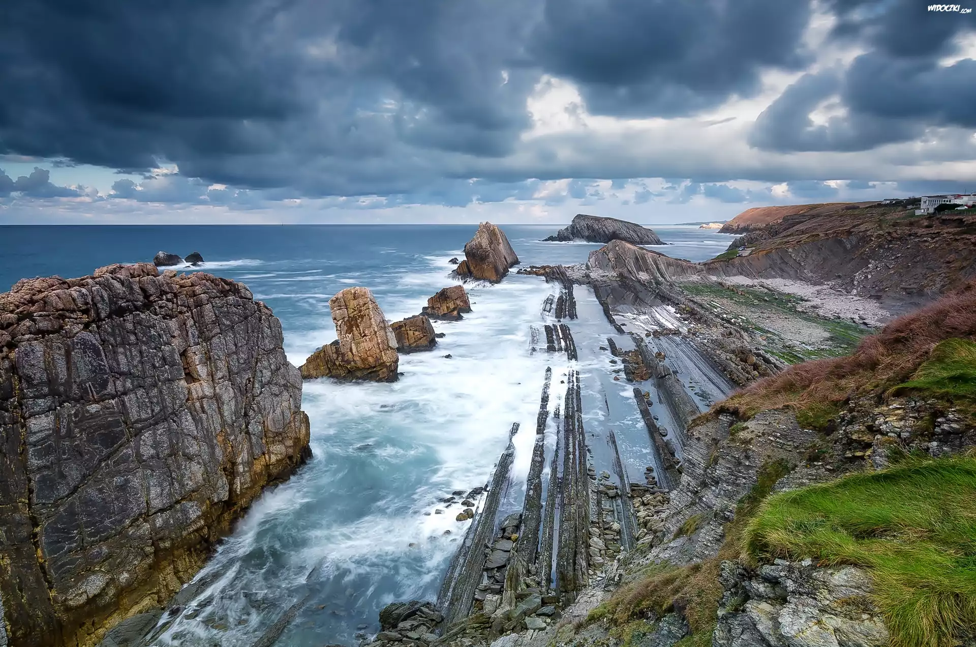 Zdjęcia, Morze, Skały, Chmury