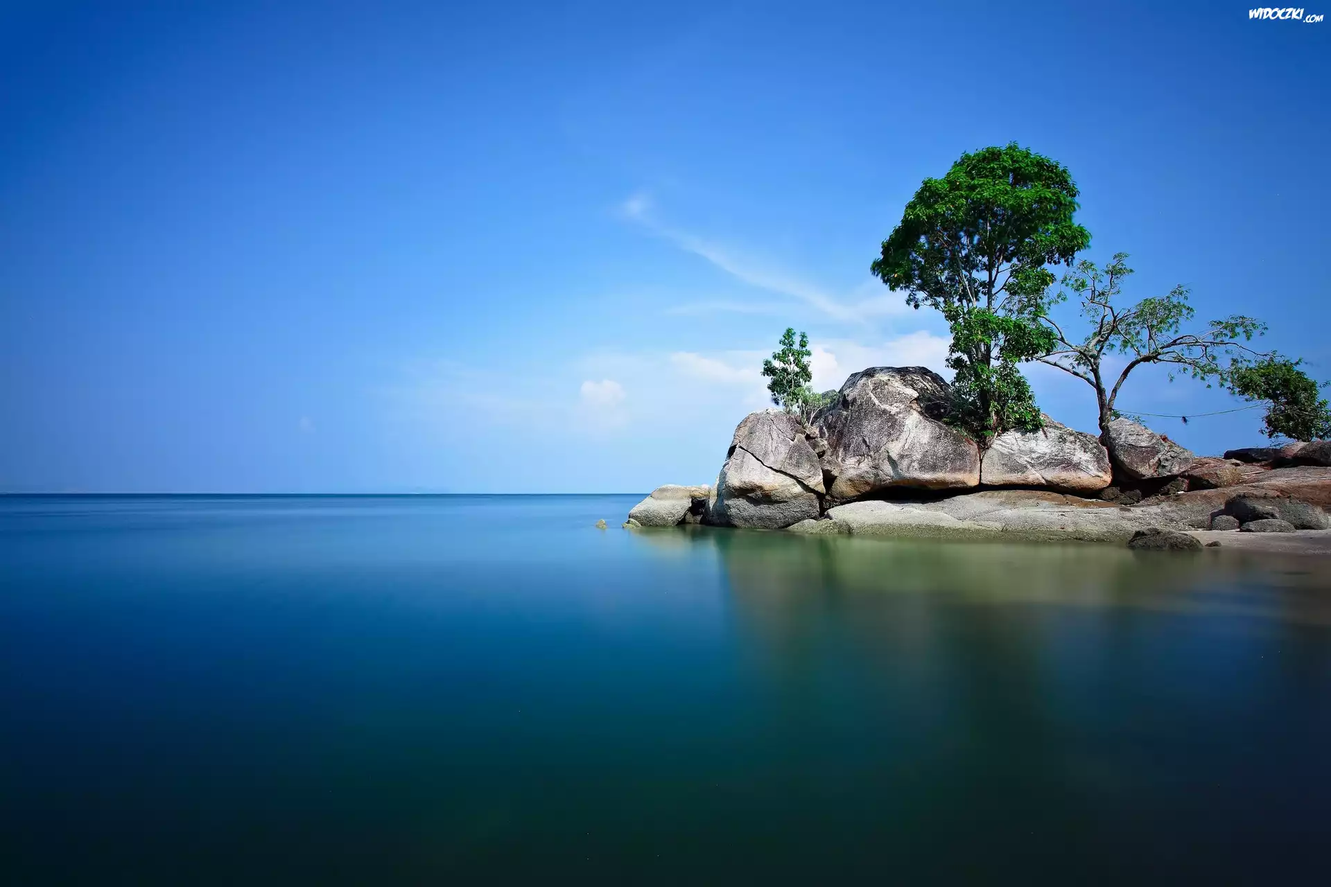 Zdjęcia, Morze, Skały, Drzewa