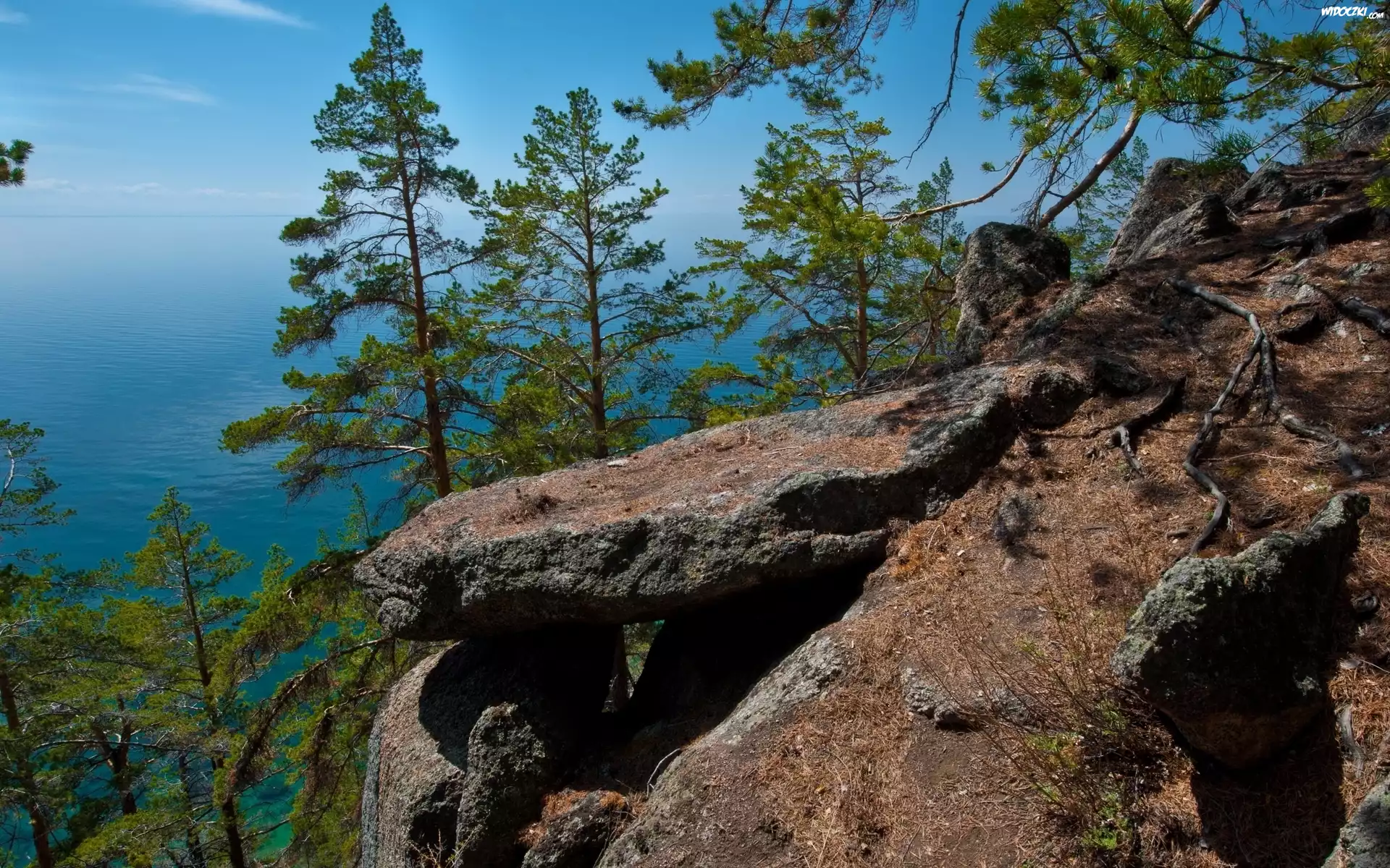 Zdjęcia, Morze, Skały, Drzewa
