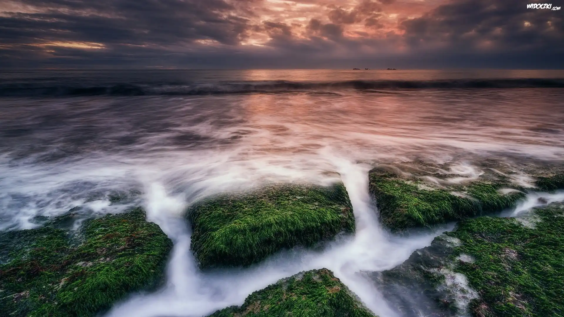 Zdjęcia, Morze, Chmury, Omszałe, Skały