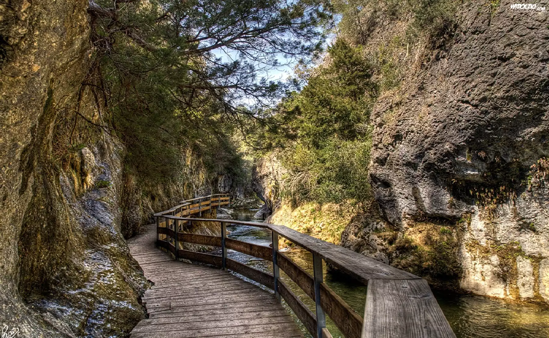 Zdjęcia, Skały, Drewniany, Mostek, Rzeka