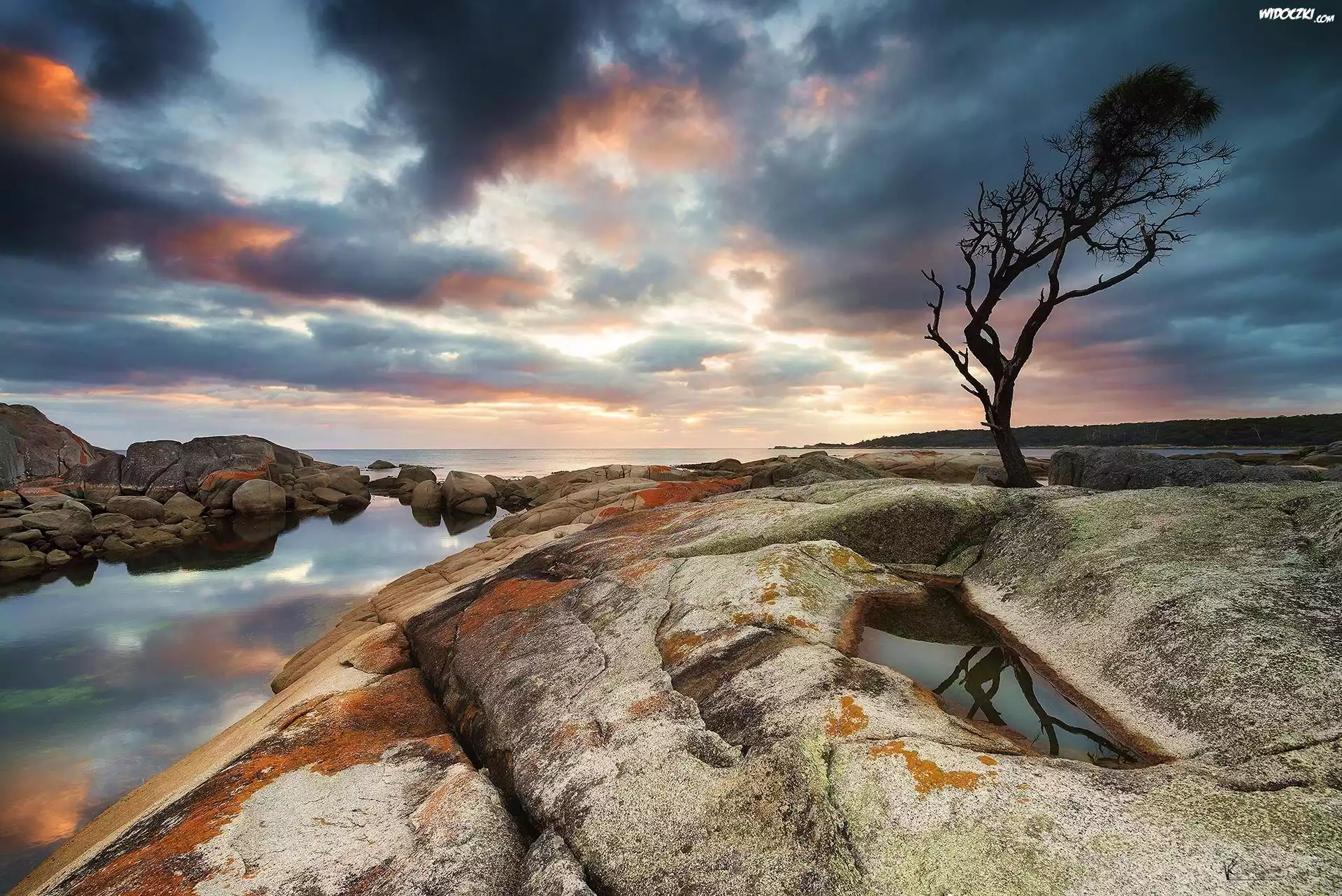 Zdjęcia, Skały, Drzewo, Niebo, Chmury