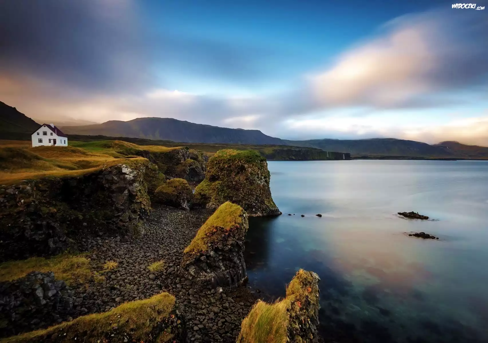 Zdjęcia, Skały, Morze, Niebo, Domek