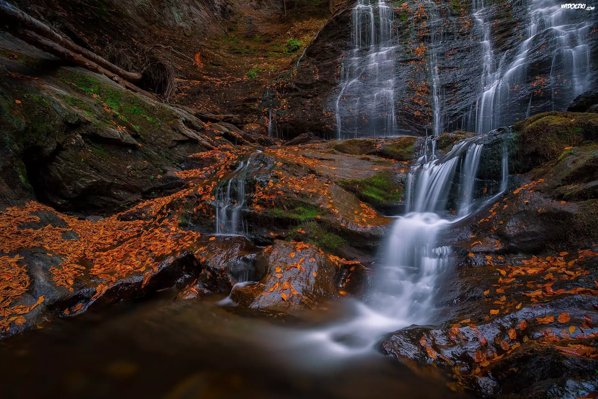 Zdjęcia, Skały, Wodospad, Opadłe, Liście