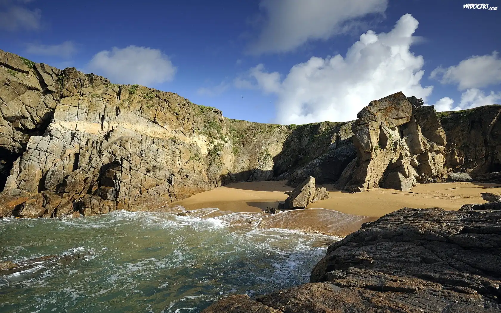 Zdjęcia, Skały, Zatoka, Plaża, Morze