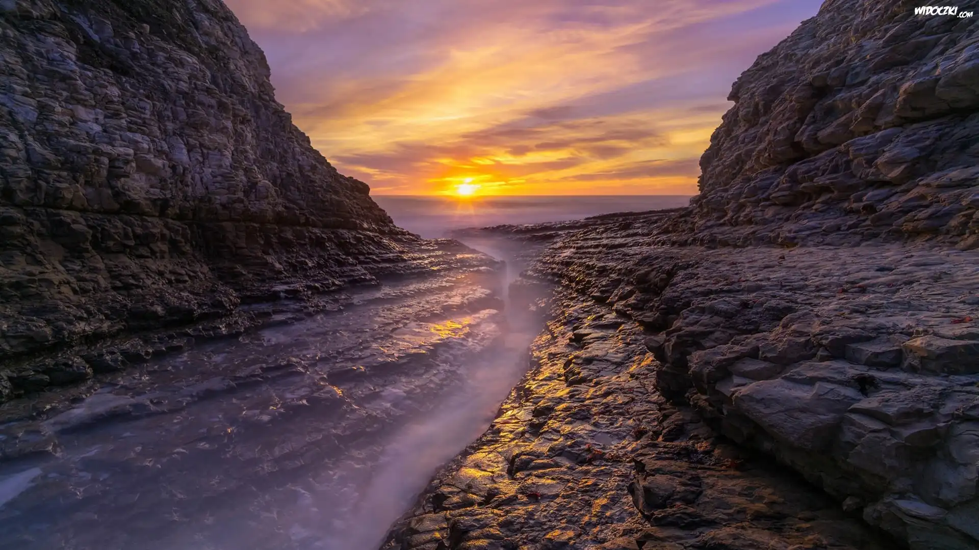 Zdjęcia, Skały, Morze, Zachód słońca, Promienie słońca