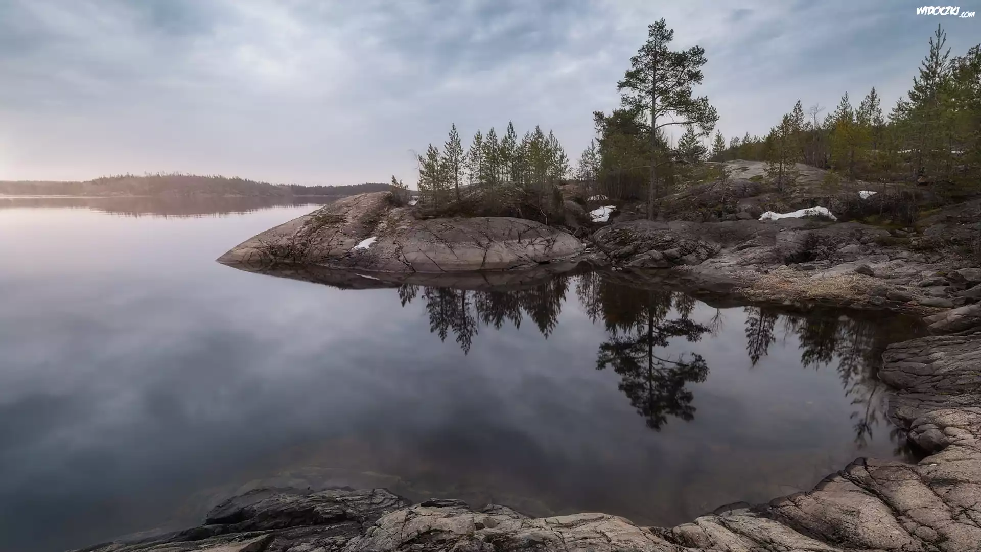 Zdjęcia, Jezioro Ładoga, Drzewa, Skały, Karelia, Rosja