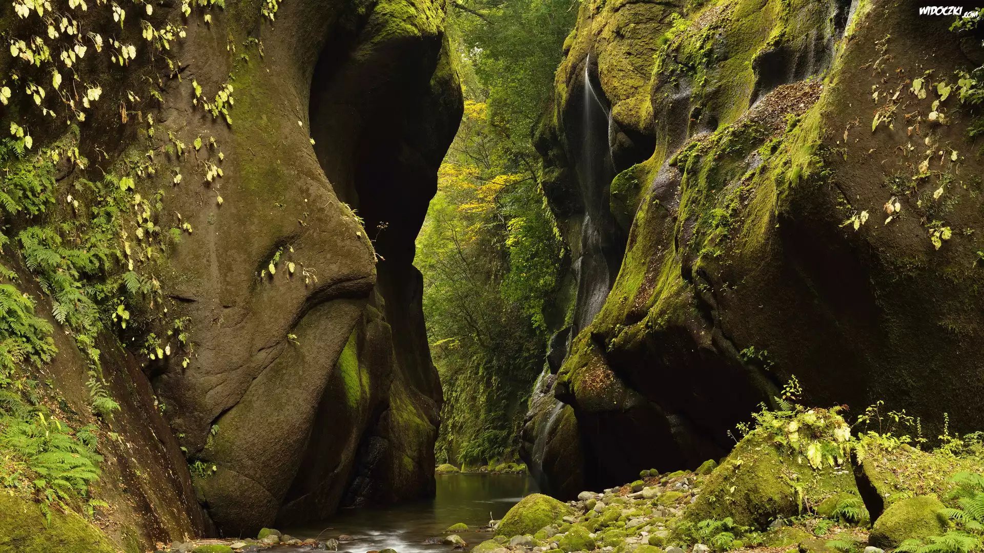 Skały, Rzeka, Roślinność, Mech