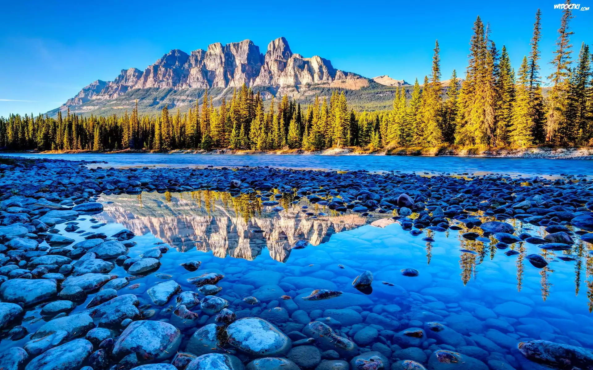 Zdjęcia, Skały, Las, Rzeka, Kamienie