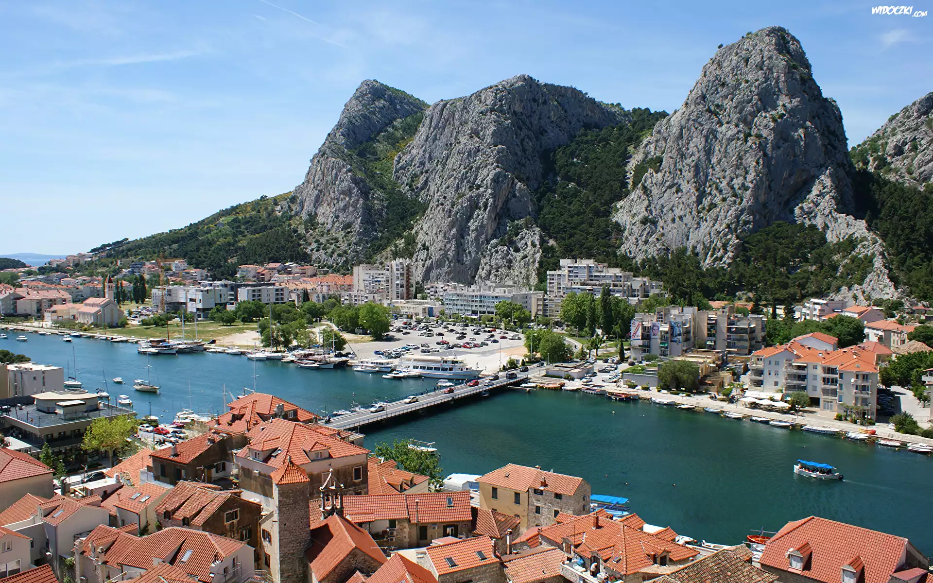 Zdjęcia, Chorwacja, Omis, Rzeka Cetina, Statki, Most, Góry, Skały
