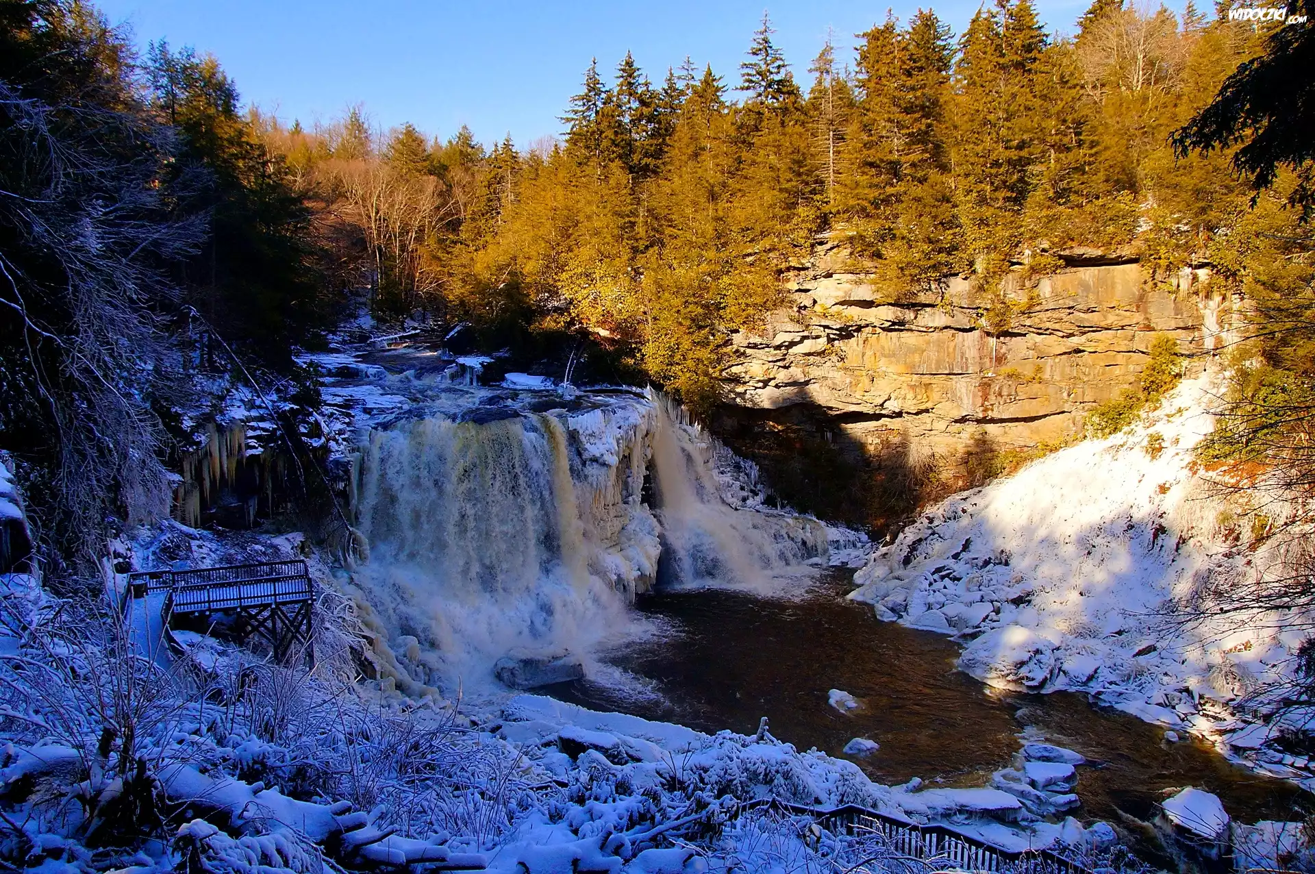 Zdjęcia, Skały, Wodospad, Rzeka, Śnieg