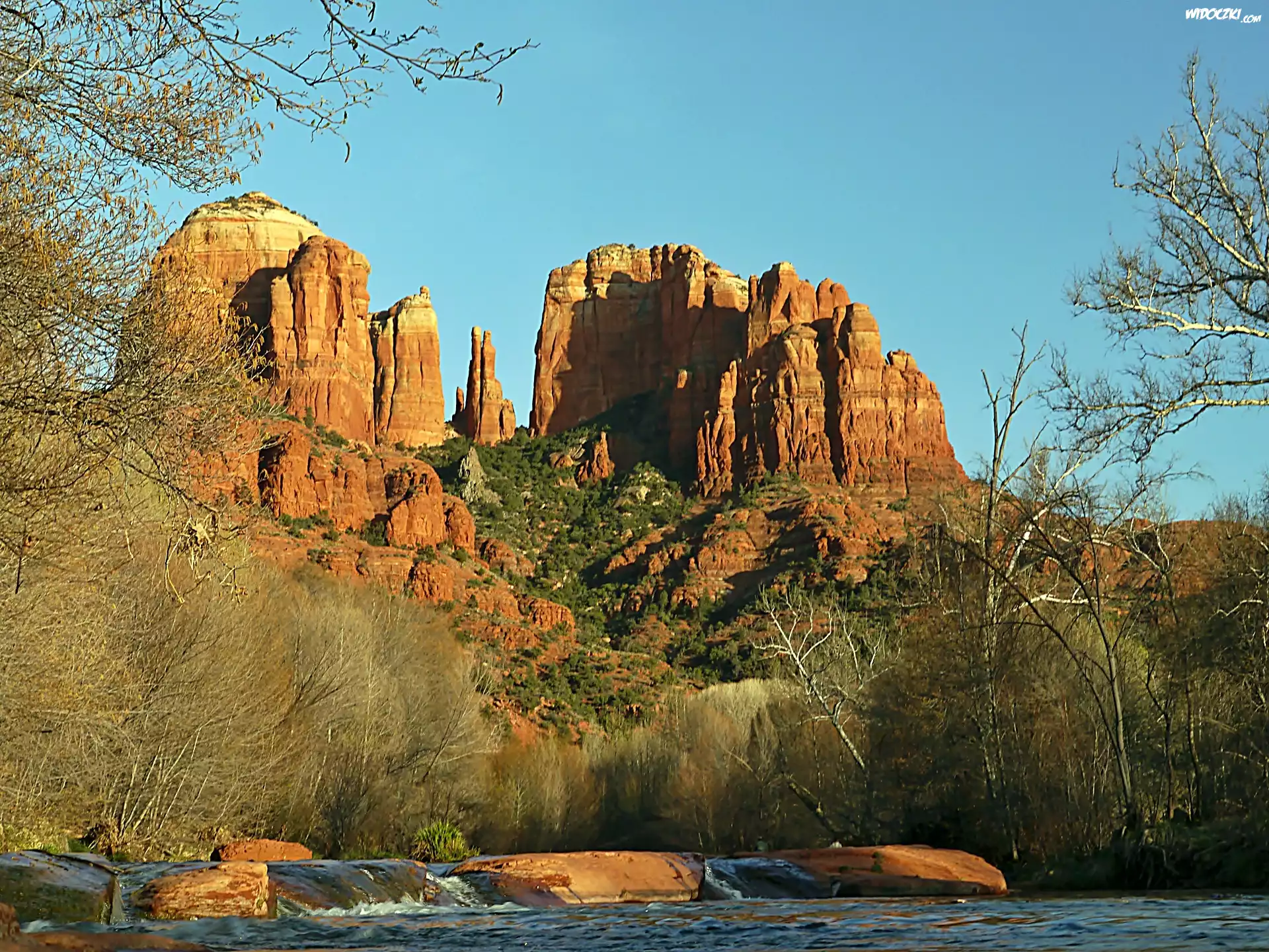 Zdjęcia, Skały, Drzewa, Zarośla, Rzeka, Sedona, Arizona
