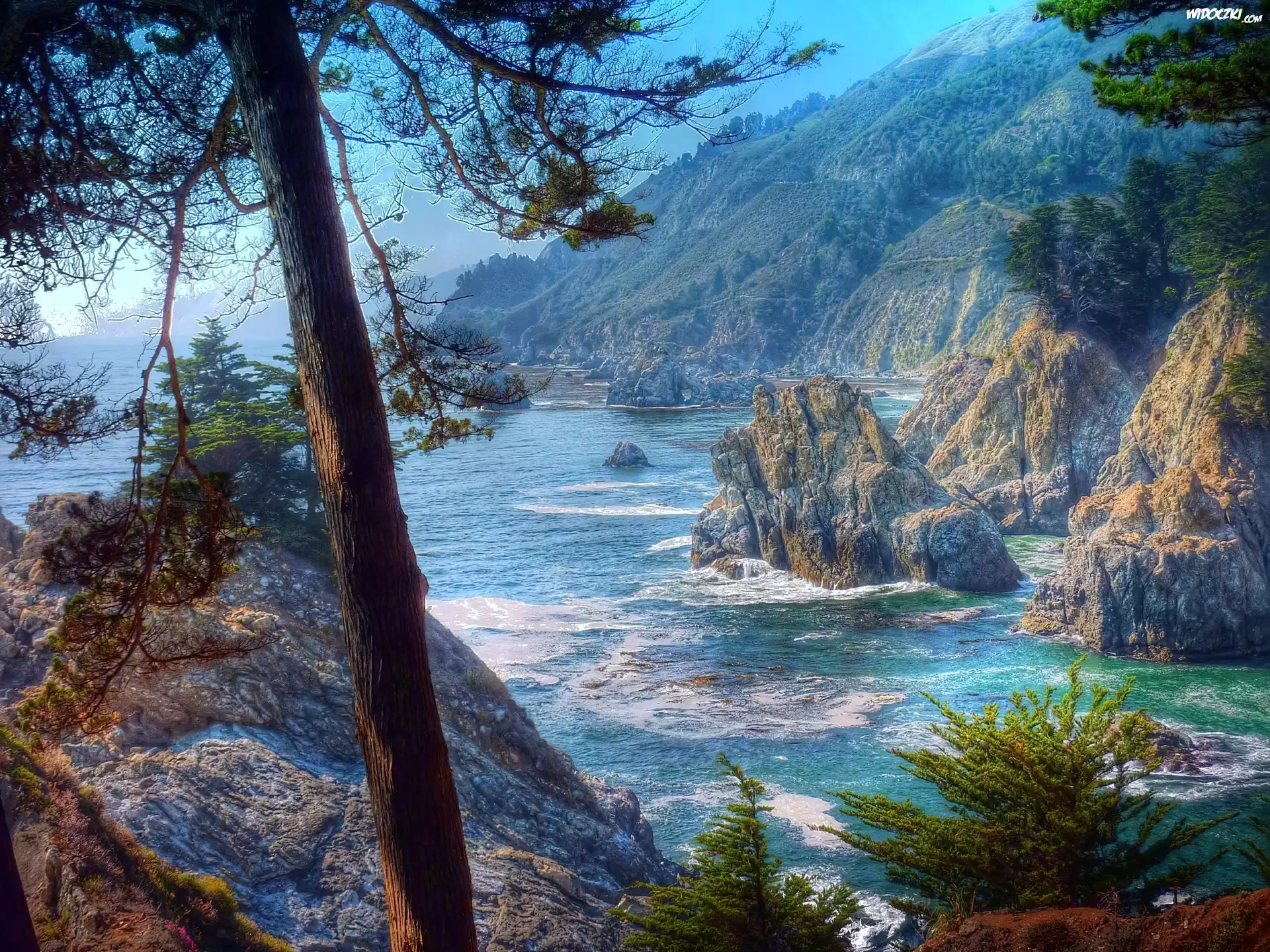 Zdjęcia, Sosna, Skały, Wybrzeże