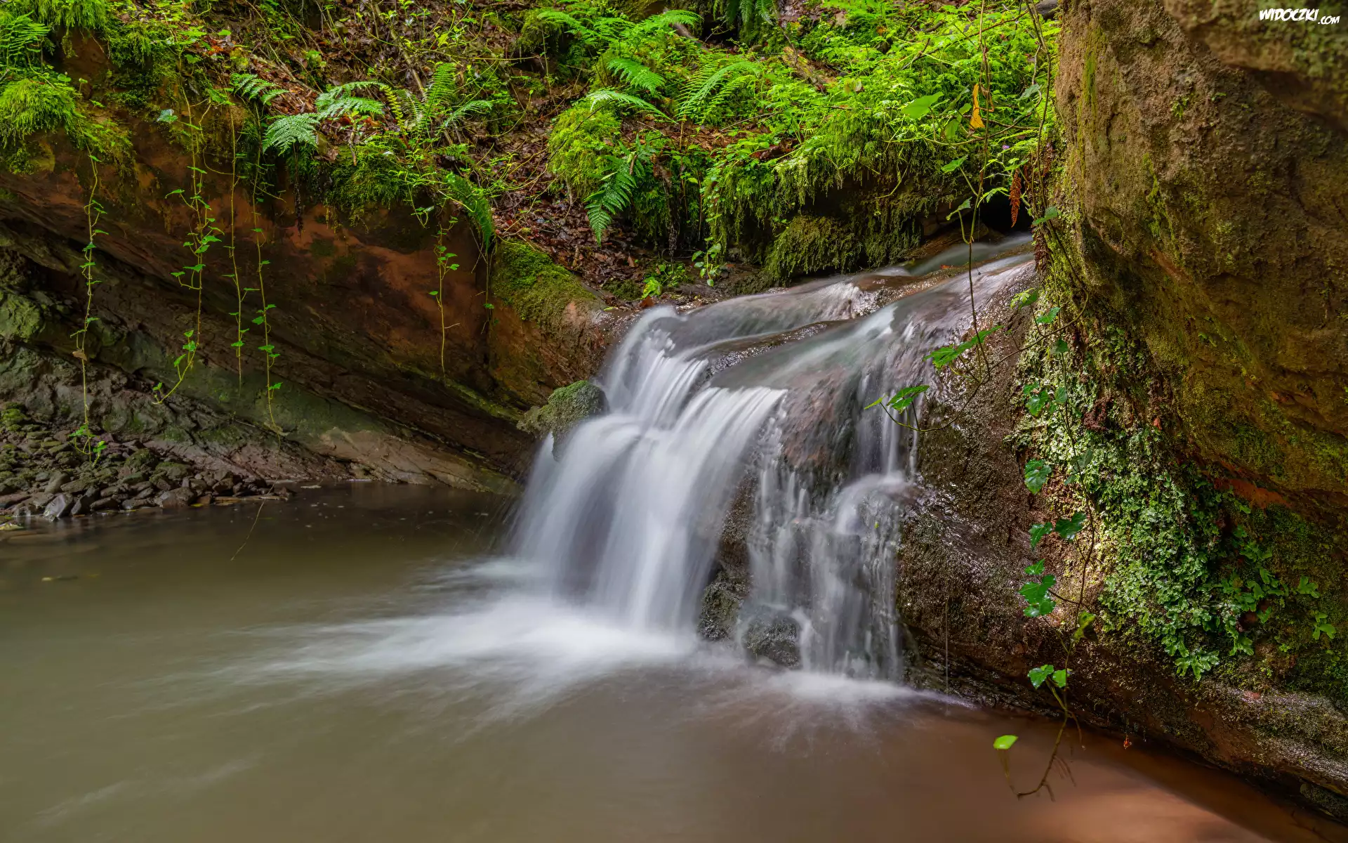 Zdjęcia, Omszałe, Skały, Strumień, Paprocie, Roślinność