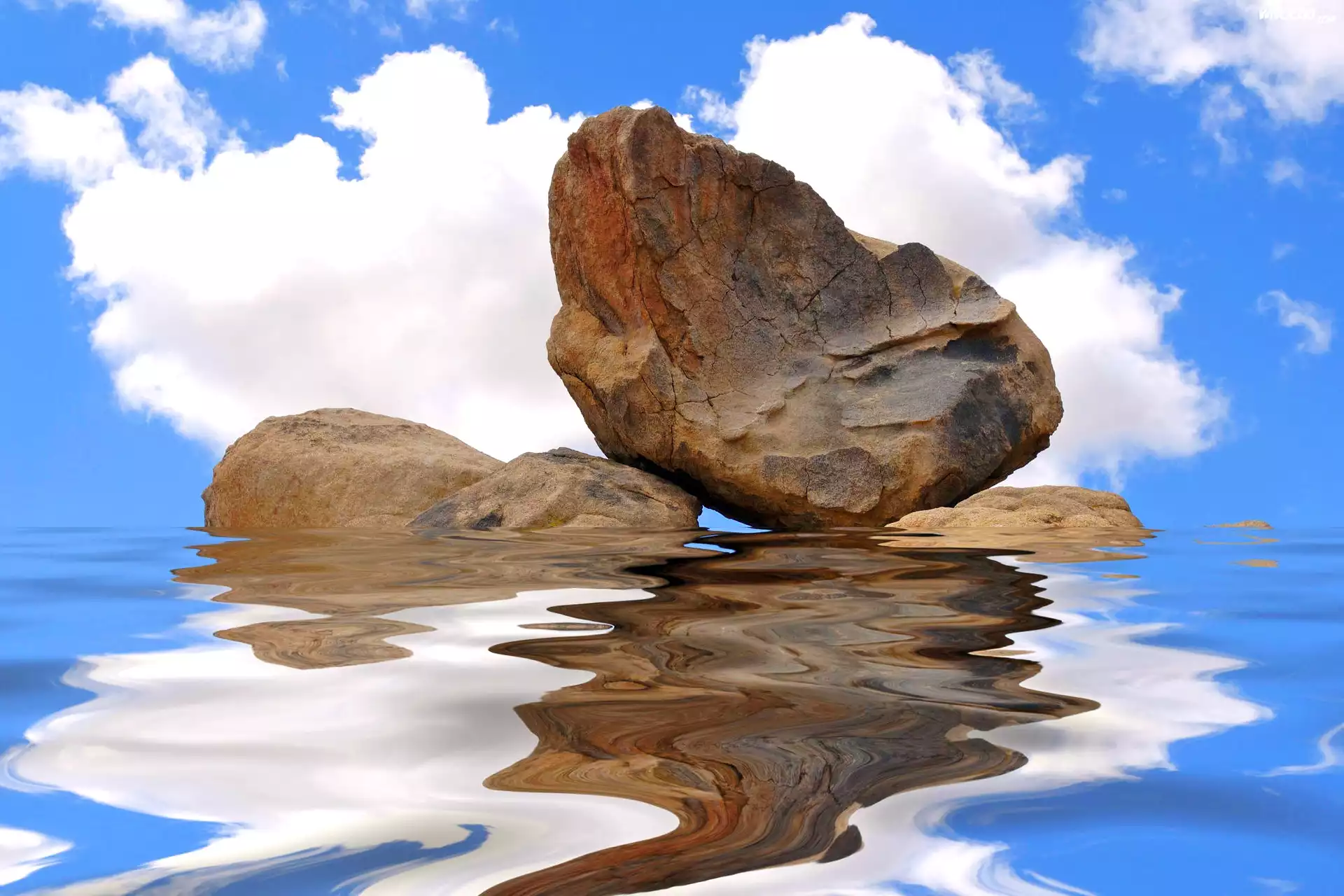 Zdjęcia, Skały, Białe, Chmury, Tafla, Wody