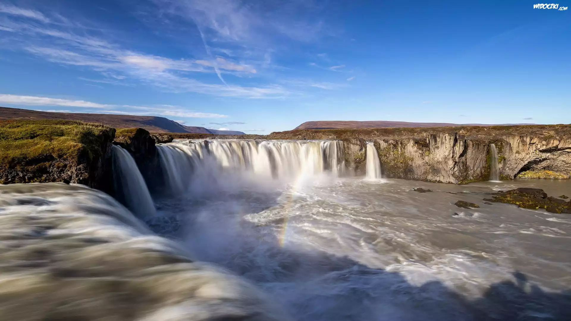 Zdjęcia, Skały, Wodospad Godafoss, Rzeka, Tęcza, Islandia