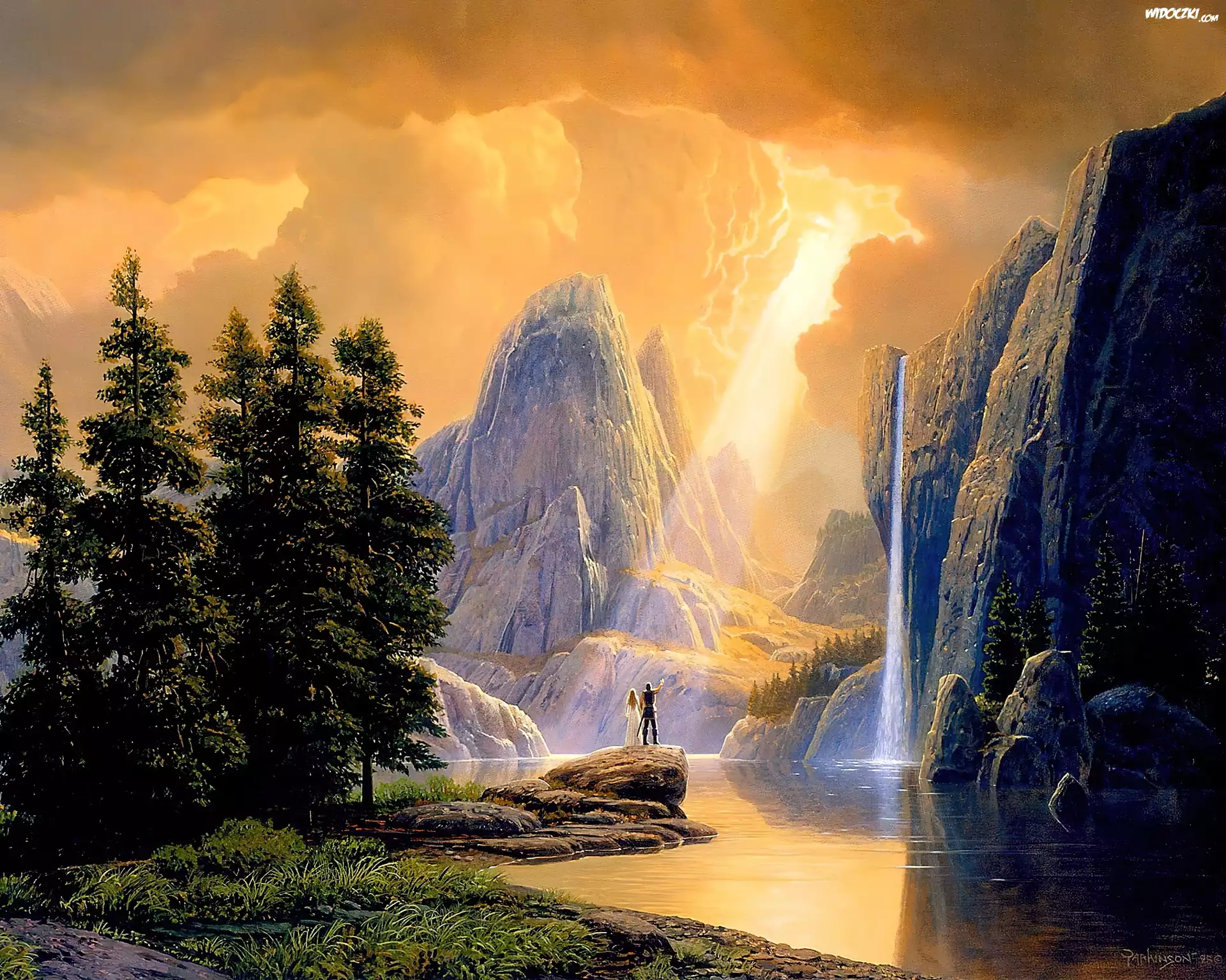 Skały, Para, Promienie, Słoneczne, Widoczek, Malarstwo