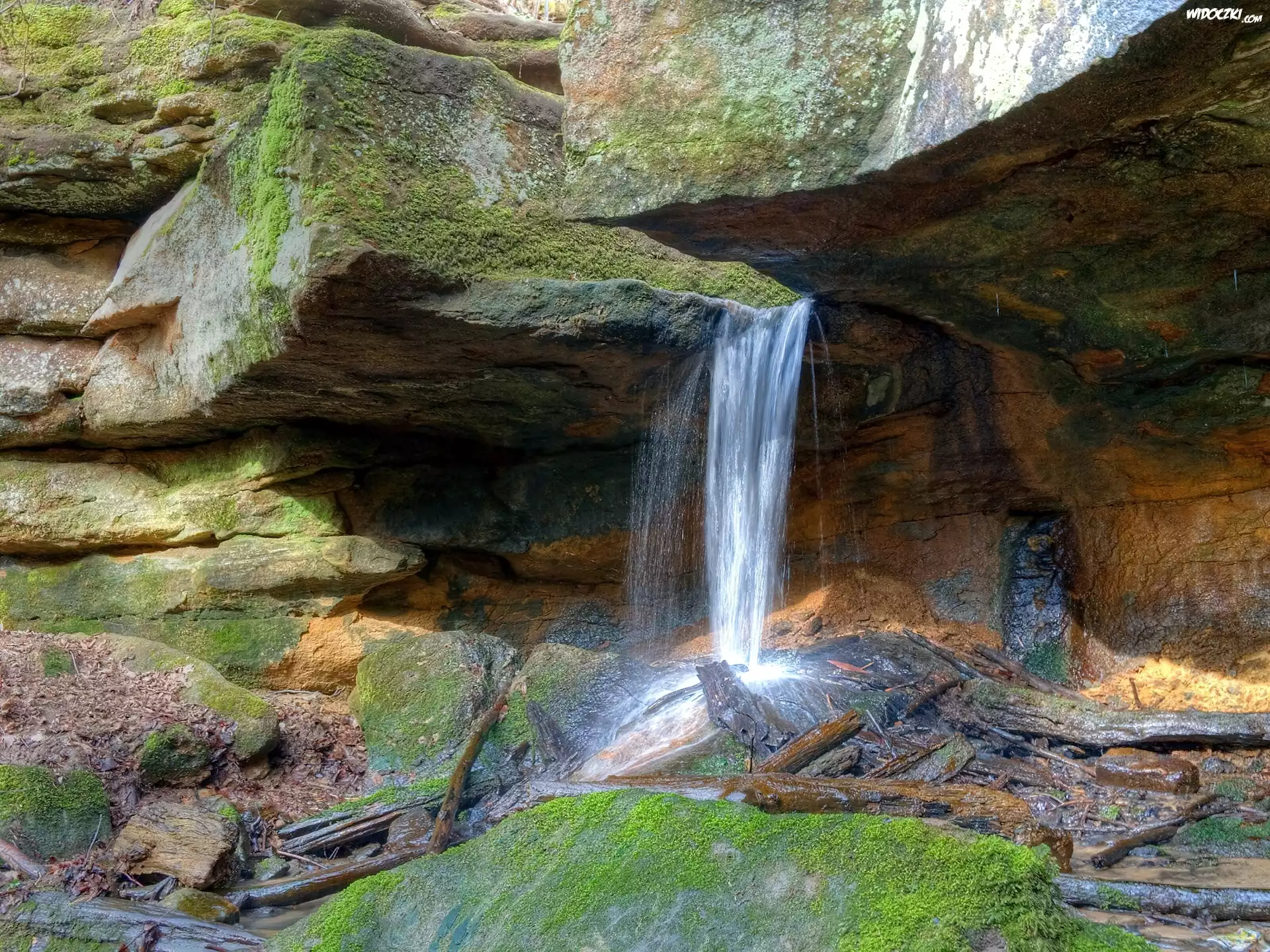 Wodospad, kłoda Wodospad Góra, Wodospady, Drzewa Kanał, Most, Kontenerowiec, Statki Kaskada, Na, Rzece, Kłoda Wodospad Wodospad Morze, Fale, Skały Rwąca, Rzeka, Kaskady, Krajobraz Skała, Las, Jesień Piękny Wodospad Wodospad, skały Kalifornia, Niebo, Chmura, Fale, Skała Jesień, Drzewa, Wodospad, Rzeka