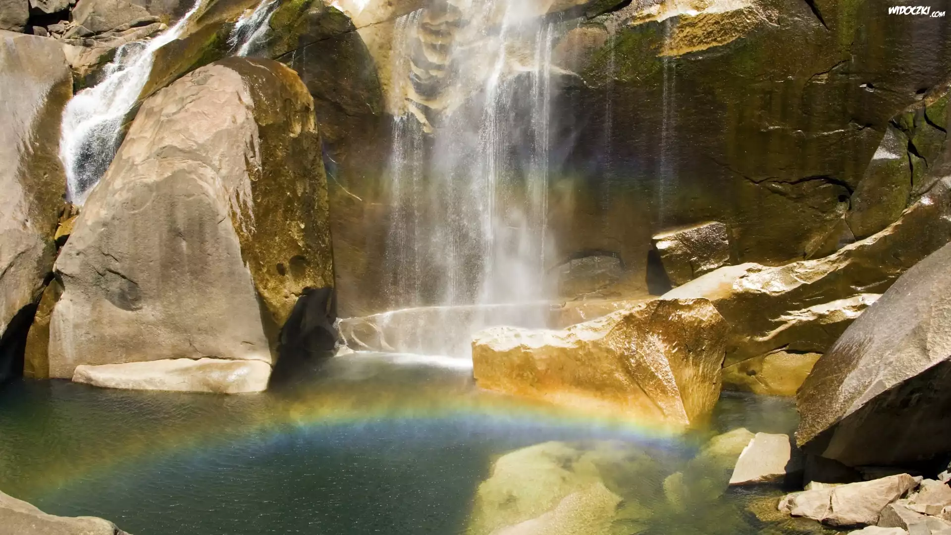 Zdjęcia, Skały, Mały, Wodospad, Tęcza