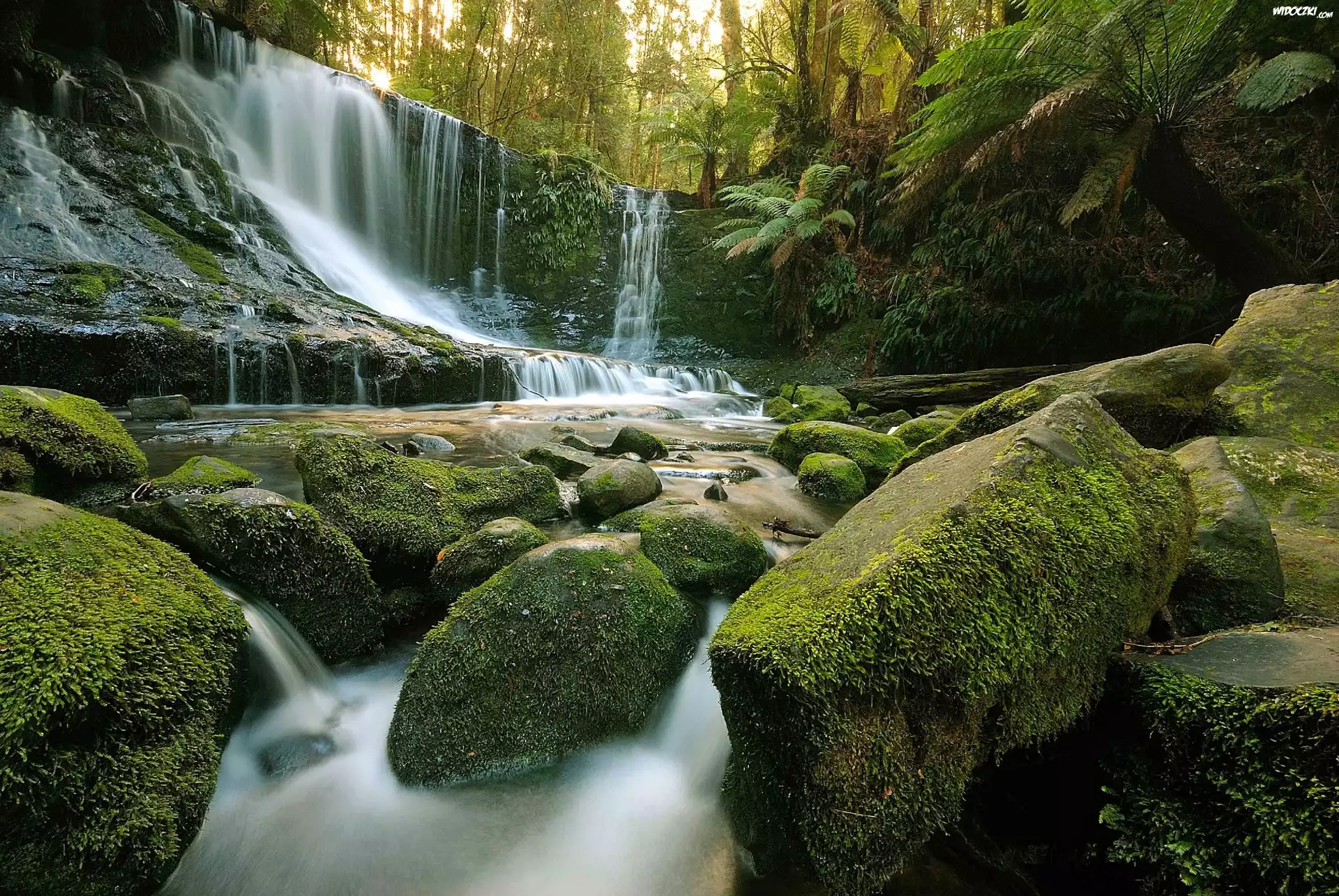 Wodospad, Lato Wysoki Wodospad Wodospad Jesień Przepiękny Wodospad, Drzewa Wybrzeże, Skały, Morze Wodospad Wodospad Alaska, Wodospad, Góra Wodospad Kanion, Rzeka, Wodospad Skały, Morze Kalifornia, Niebo, Chmura, Fale, Skała Skała, Fale, Morze, Krzyż Wodospad w lesie