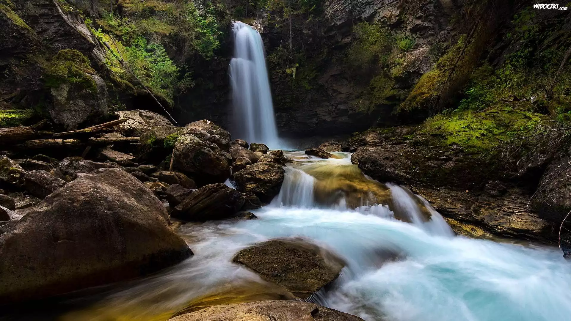 Zdjęcia, Skały, Rośliny, Wodospad, Rzeka