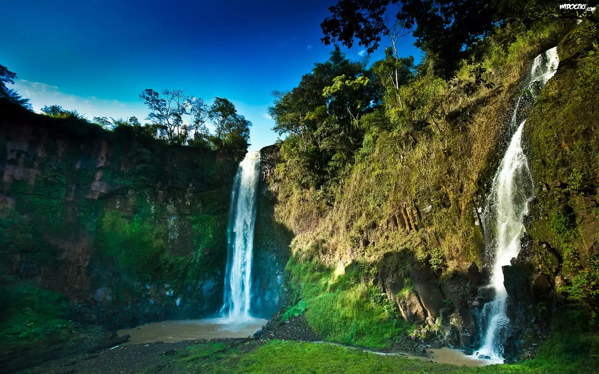 Wodospady, Skały, Drzewa