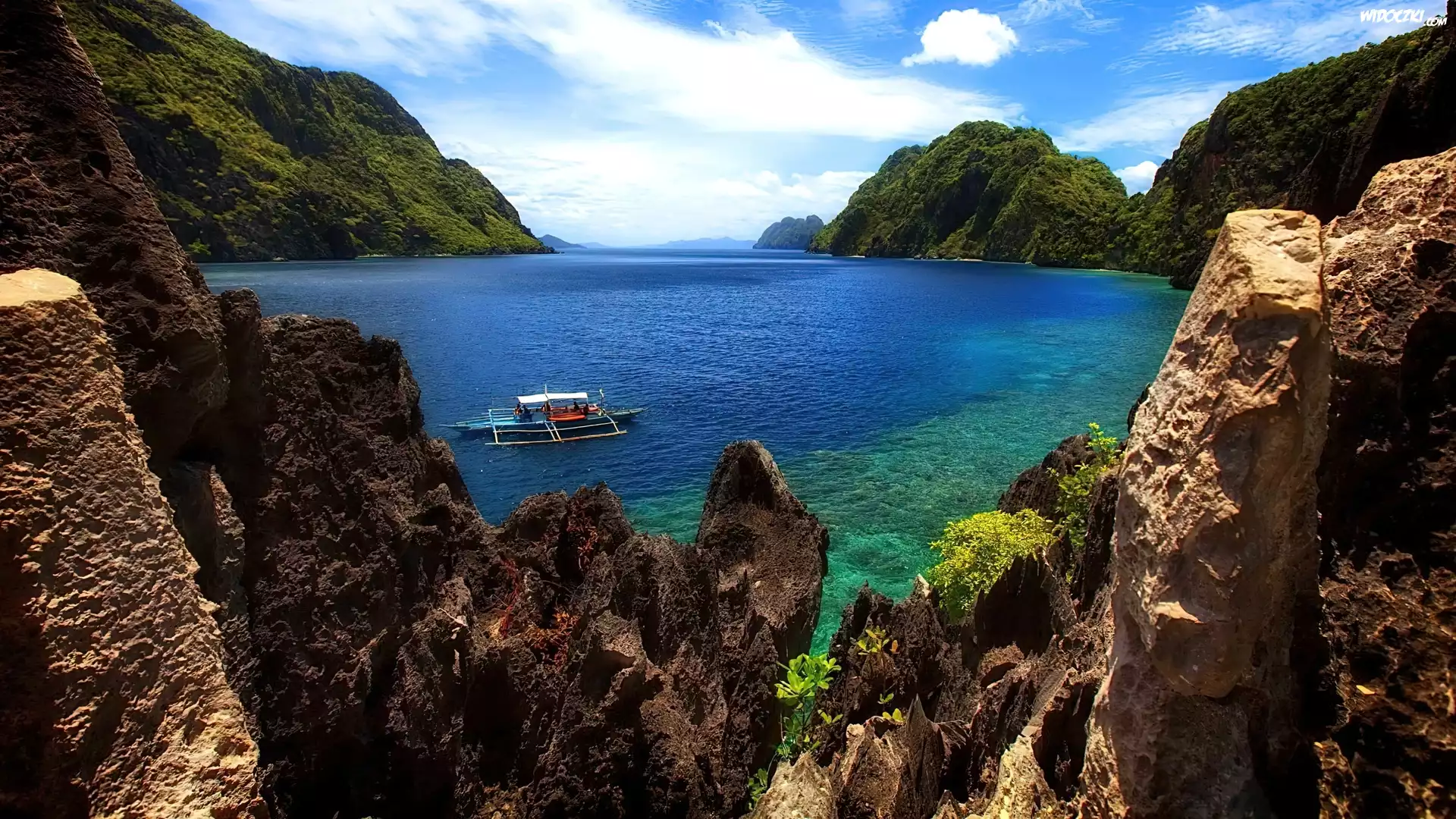 Zdjęcia, Skały, Morze, Wybrzeże, Łódz