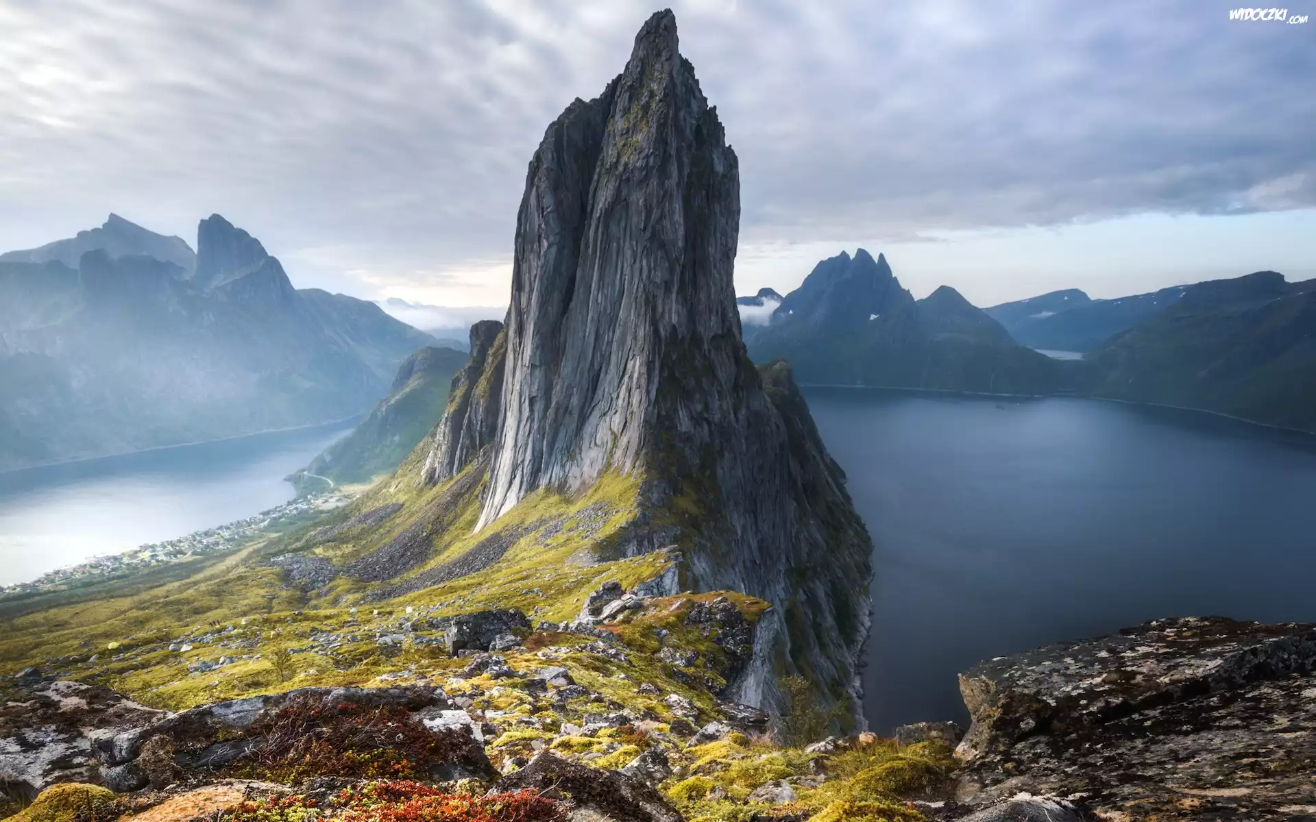 Norwegia, Morze, Wyspa, Senja, Góry, Szczyt, Segla, Skały