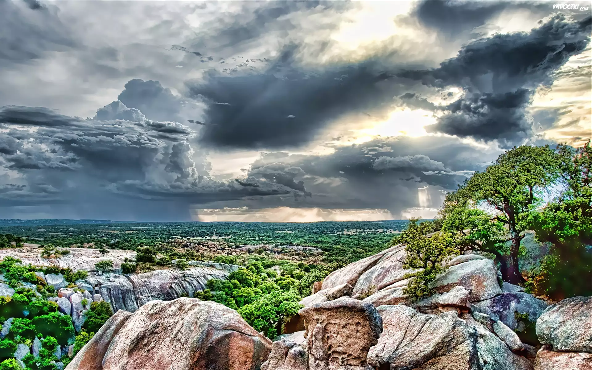 Zdjęcia, Skały, Las, Zachmurzone, Niebo