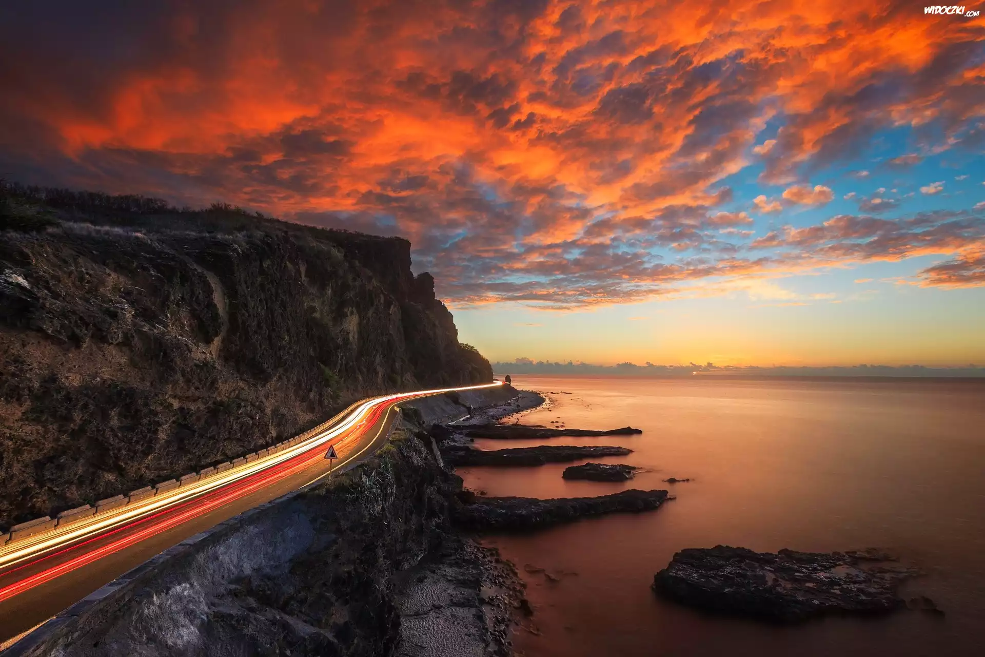 Zdjęcia, Skały, Droga, Morze, Zachód, Słońca