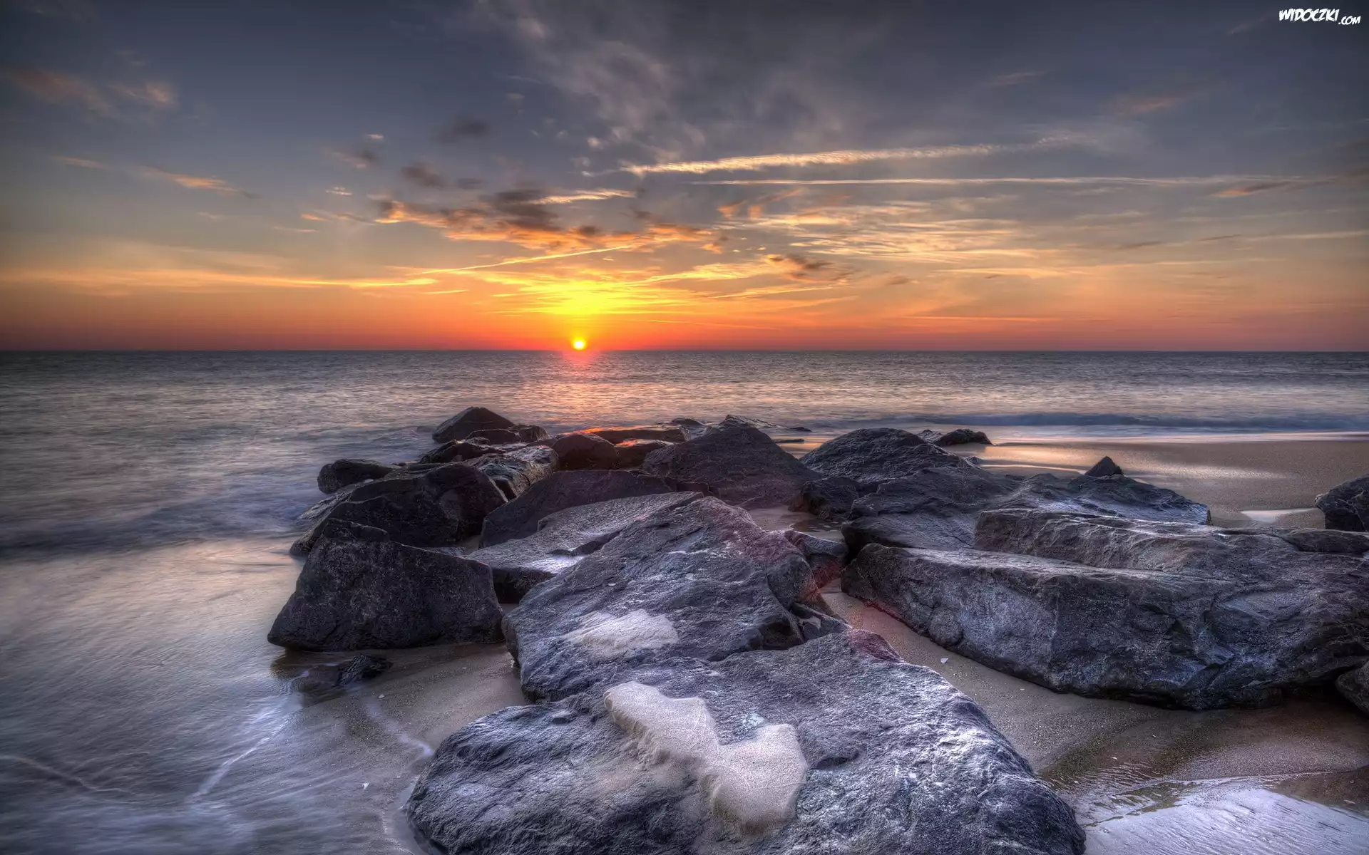 Zdjęcia, Skały, Morze, Zachód, Słońca