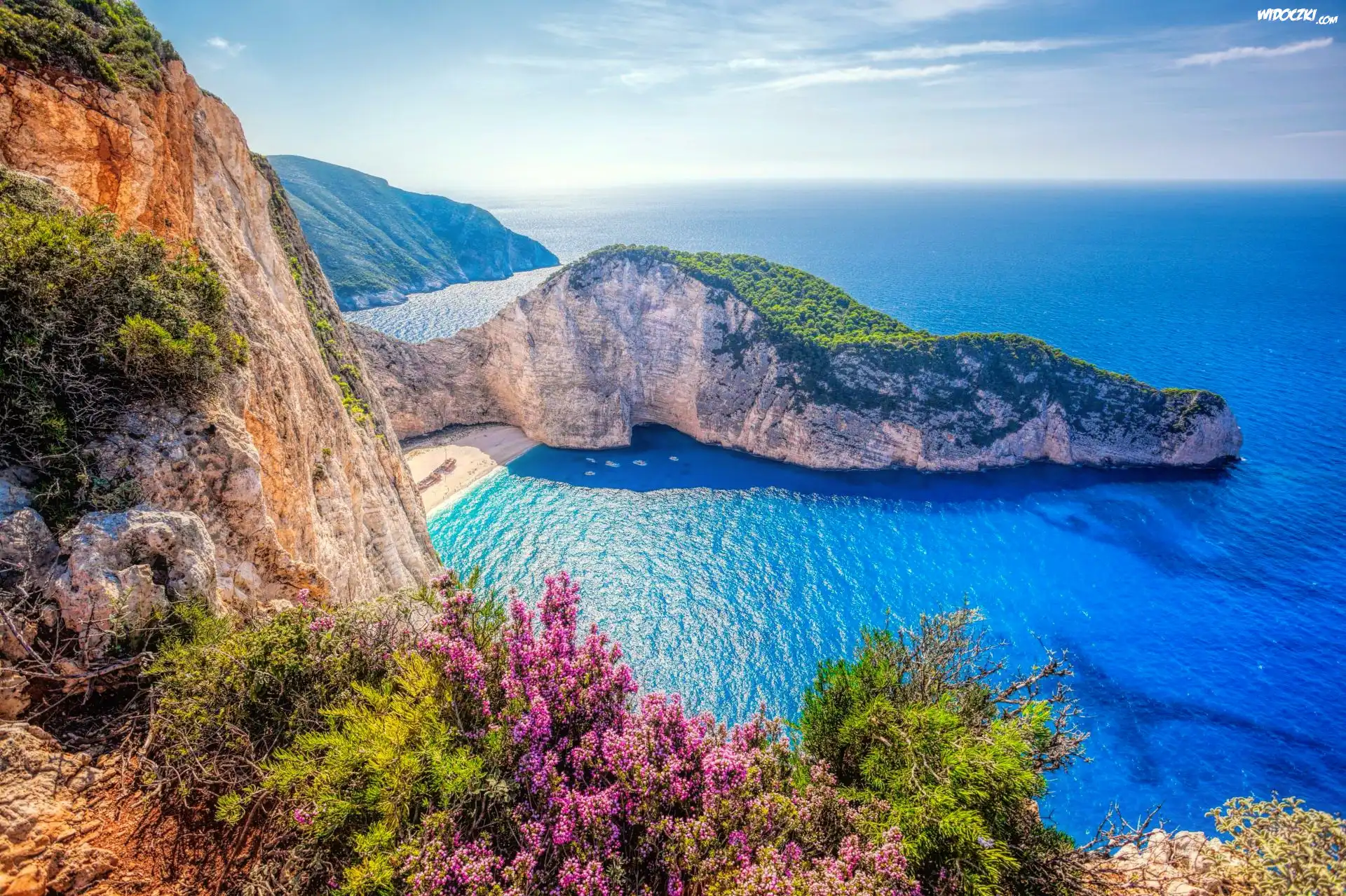 Zdjęcia, Grecja, Wyspa Zakintos, Plaża Nawajo, Morze Jońskie, Zatoka, Skały