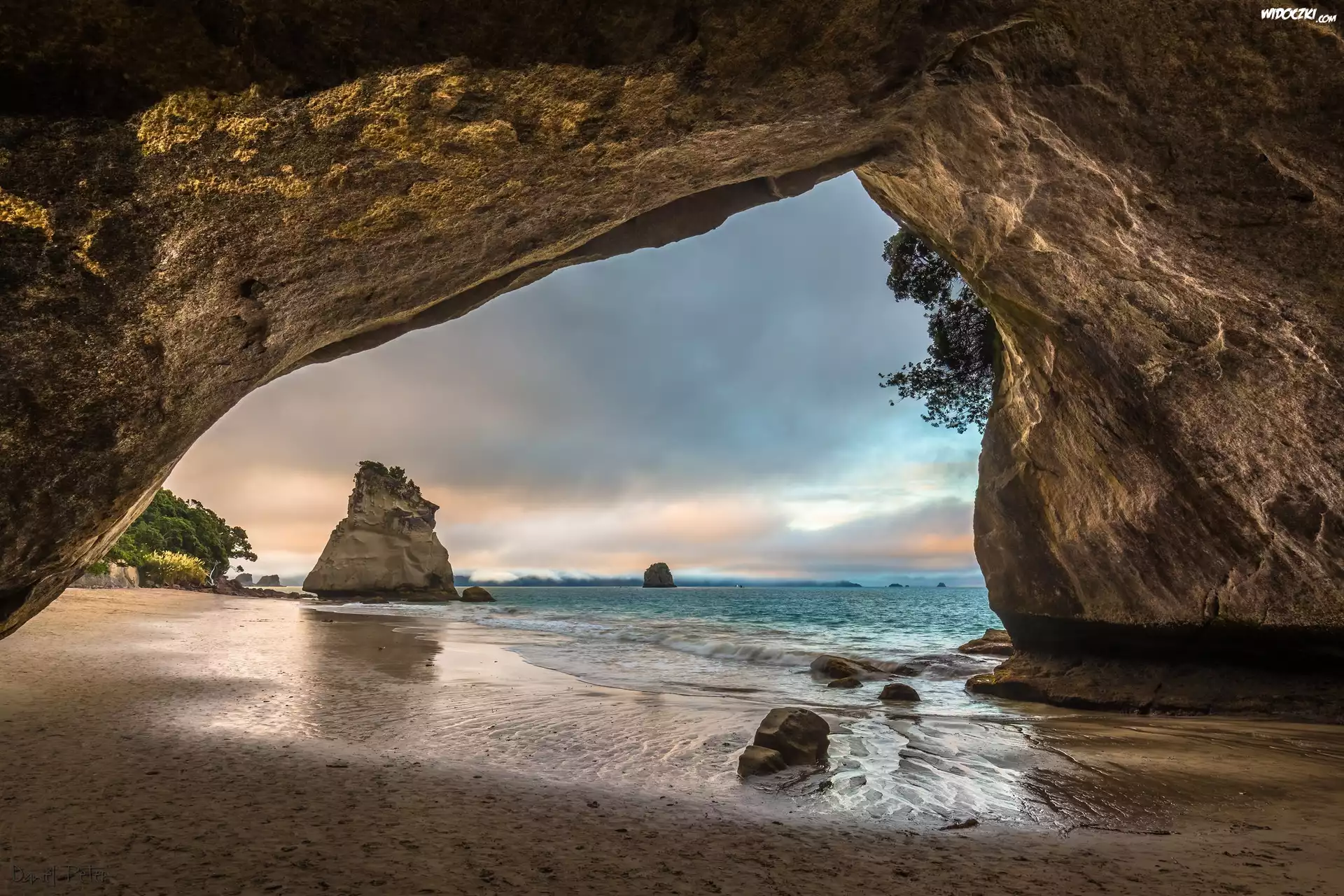 Zdjęcia, Zatoka Cathedral Cove, Jaskinia, Morze, Skały, Nowa Zelandia, Półwysep Coromandel, Region Waikato