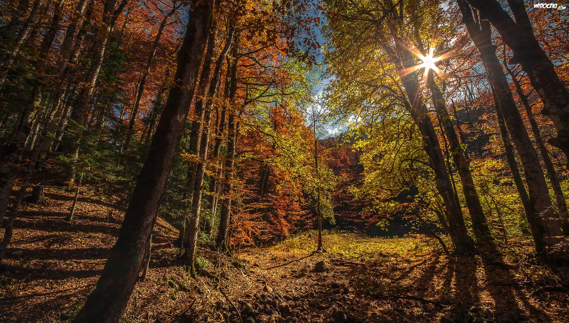 Zdjęcia, Czarnogóra, Park Narodowy Biogradska Gora, Las, Drzewa, Jesień, Promienie słońca