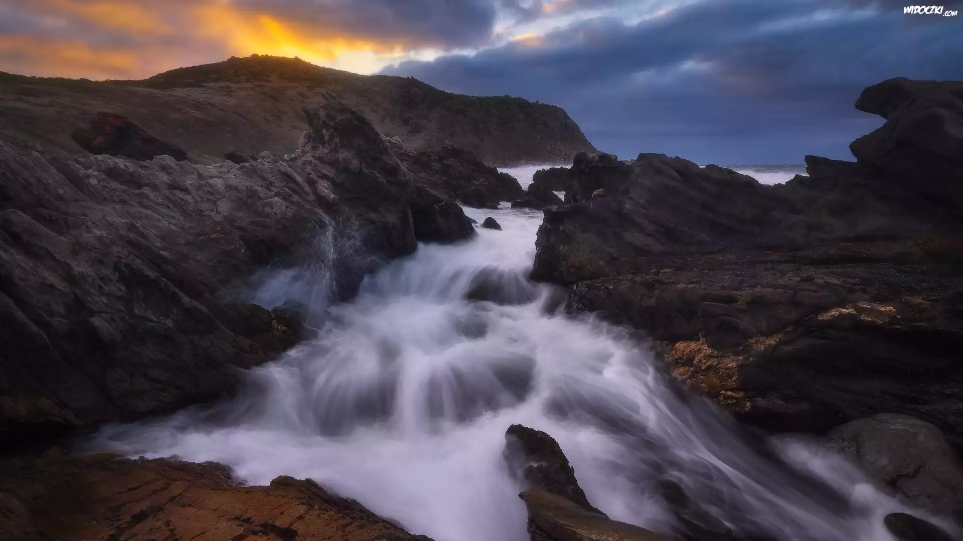 Zdjęcia, Wschód słońca, Góry, Skały, Rzeka